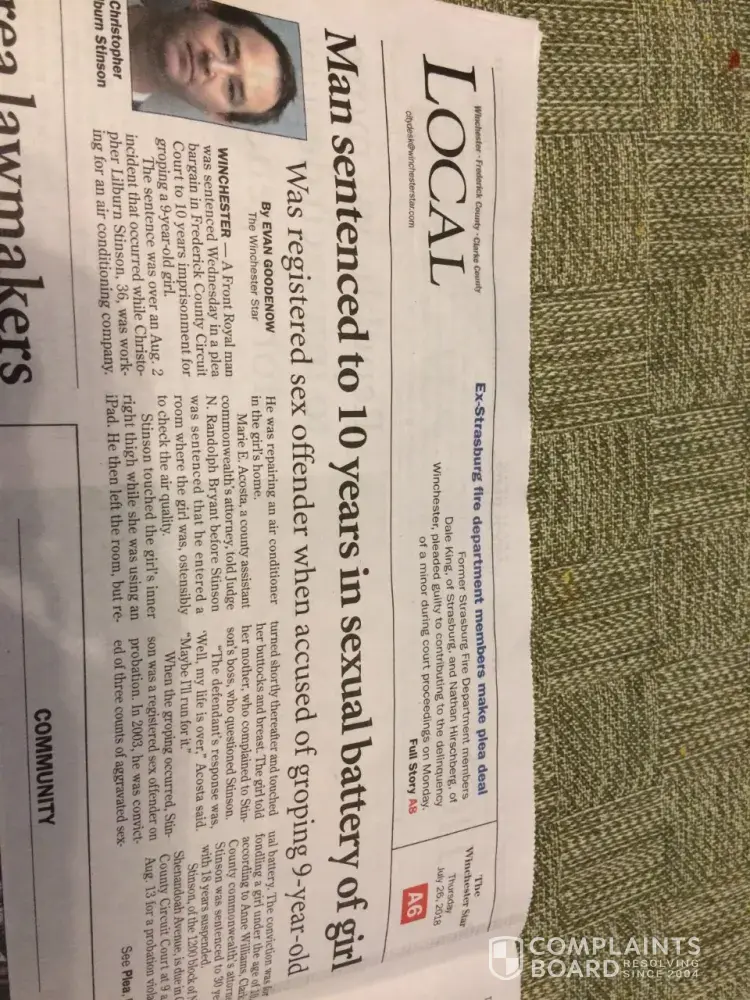 On August 2, 2017 one of my neighbors that was using American Home Shield contacted them to have there AC fixed. They sent over GSSN HVAC that had a registered sex offender as a technician. He then assaulted my neighbors daughter. AHS still uses them as a sub contractor in Northern Virginia.