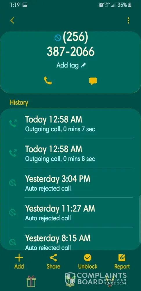 This contact information is personally checked and verified by the ComplaintsBoard representative.