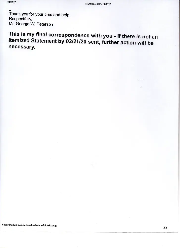 Unable to get an itemized statement
