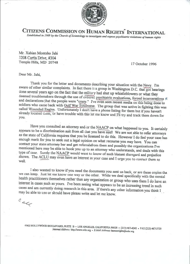 Joining the USN in 1987, I became an EEG Technician, stationed at Portsmouth Naval Medical Center (PNMC). Upon reclaiming an Afrocentric name (1992) — I had a "perfect" corpsman record, and reenlisted — I was targeted for a "kangaroo" AdminSepBoard after I defeated them at the UCMJ. I'm still seeking reconciliation. Norfolk Naval Base JAG officer H. Hanna informed me they regularly were contacted by PNMC to "do their dirty work." The navy violated "double-jeopardy" laws. I have mounds of Official Docs proving my claims. I've currently gone into restitution overload mode by contacting multiple government agencies, my Congressional Representative (Anthony G. Brown, unfortunately for me, he's ex-navy), and I've been exposing the terrorism and travesty I've experienced to press agencies, "Invisible Wars," and "Protect Our Defenders." While in, I had numerous fellow members of Army also, telling me how the incident I experienced was normal. Race riots on ships was also divulged to me. My Afrocentric name even led a Blackfemale, legal representative tell me during the changing process-which I underestimated the gravity — that "this is going to blow them away." I had no idea what she meant. I even had two Blackfemales who were forced to convict me irregardless of how they felt, at the AdminSepBoard, voluntarily come and visit me at my clinic and tell me to try and talk the Base Commander. Reluctantly I did. The BC said to me "bull*hit" when I told him the base had a bad racial (antiKEMETism) problem. At my [personally requested] UCMJ, two base officers testified on my behalf, a Capt. Johnson and LCDR Sayers of the Rheumatoid Clinic. My last Evaluation from the base they produced, along with a civilian nurse (Brenda Murdock, who said the navy's problem with me was me being too intelligent for them) had me at "4.0" for REENLISTMENT, as usual. And most importantly, This is a pattern the navy engages in as expressed to me by a civilian female of then Rep. Albert R. Wynn's office. I was lucky I mad it out alive, as exhibited by the military overseeing organizations of: "Protect Our Defenders" & "Invisible Wars."