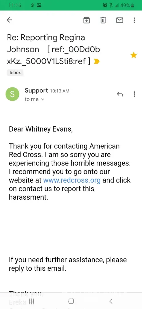 Regina Johnson my son grandmother have been sending disturbing messages to my phone about my disabled child, by her son Brian. Regina and Brian other child's mother Jasmine have been playing on my phone. Brian Foote' and I have broken up over this on going harrassment. I'm not understanding of how a women who works for the community can constantly engage in such negative activities. Regina is a manager at one of the St.Louis Red Cross locations. Just last week she tried to report me for child neglect, while I was in the Hospital. The police came to my home, and after showing proof of my whereabouts the police didn't file a report. I have witnesses of the situation to prove my case.