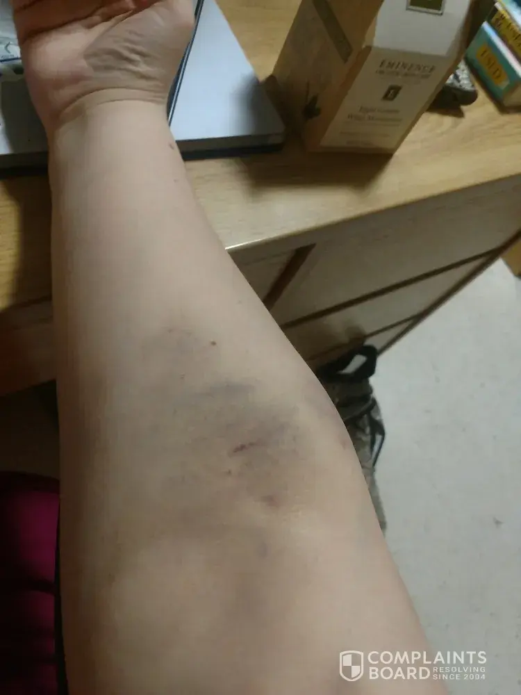 Today 7/17/18 I decided to donate blood so I stopped at St. Anne's Hospital in Fall River, as there was a blood drive. This complain is pertaining to one woman. Everything went well until the end of my donation. One girl did my intake and started the phlebotomy. Another older woman said to the girl (who started my phlebotomy)your going to lunch, As she was about to start another donor. The woman who finished my phlebotomy didn't introduce herself she just came over started applying clams, drew tubes of blood, withdrew the needle and told me to apply pressure and hold my arm up in the air. After applying pressure for about 20-30 seconds she put a bandaid on and said "k go sit over in canteen for 10-15 minutes." I then asked if I could have some coflex and she asked "why." I said to wrap my arm. This was not a positive experience for me. As a phlebotomist myself, I believe pressure should have been applied for longer or maybe even check to see if the bleeding has stopped before applying a bandaid. She was not well mannered and had poor bedside manner. She should have been grateful for my donation but instead seemed like she just wants the day to be over. Now I have a large bruise and question whether I will ever donate again. It's upsetting to know that this woman is probably giving others a similar poor experience as mine. She's seems like someone whose been doing the job for 30 years and thinks she's in charge and can get away with whatever she wants. However, as an outside looking in and knowing the proper procedure I would not feel comfortable going back or trying to convince a friend or family member to donate knowing that they might have to meet someone like her. I think this issue needs to be addressed and maybe she should be inserviced on best practice and manurisms.