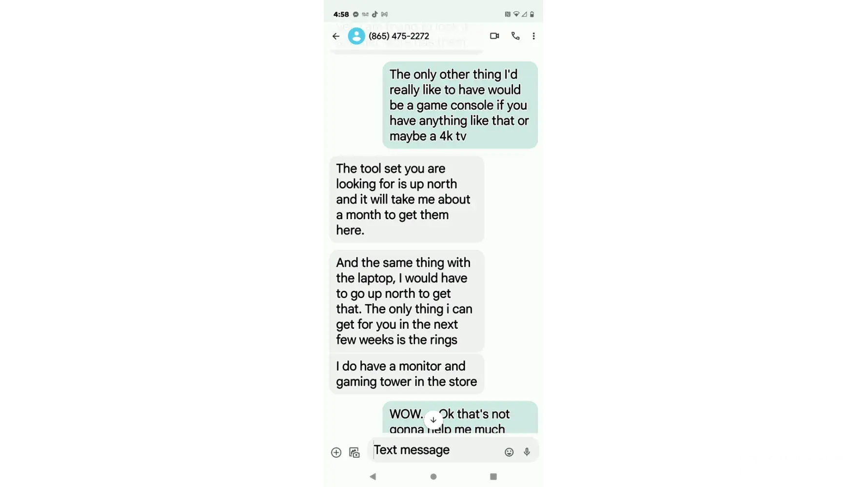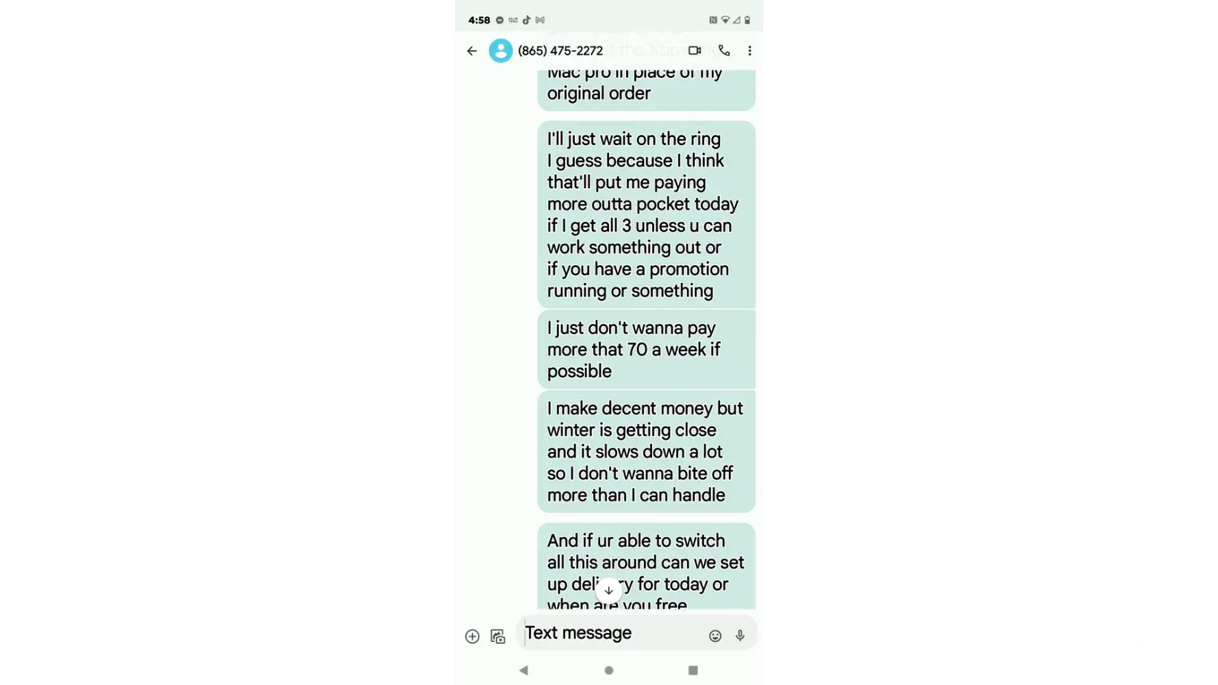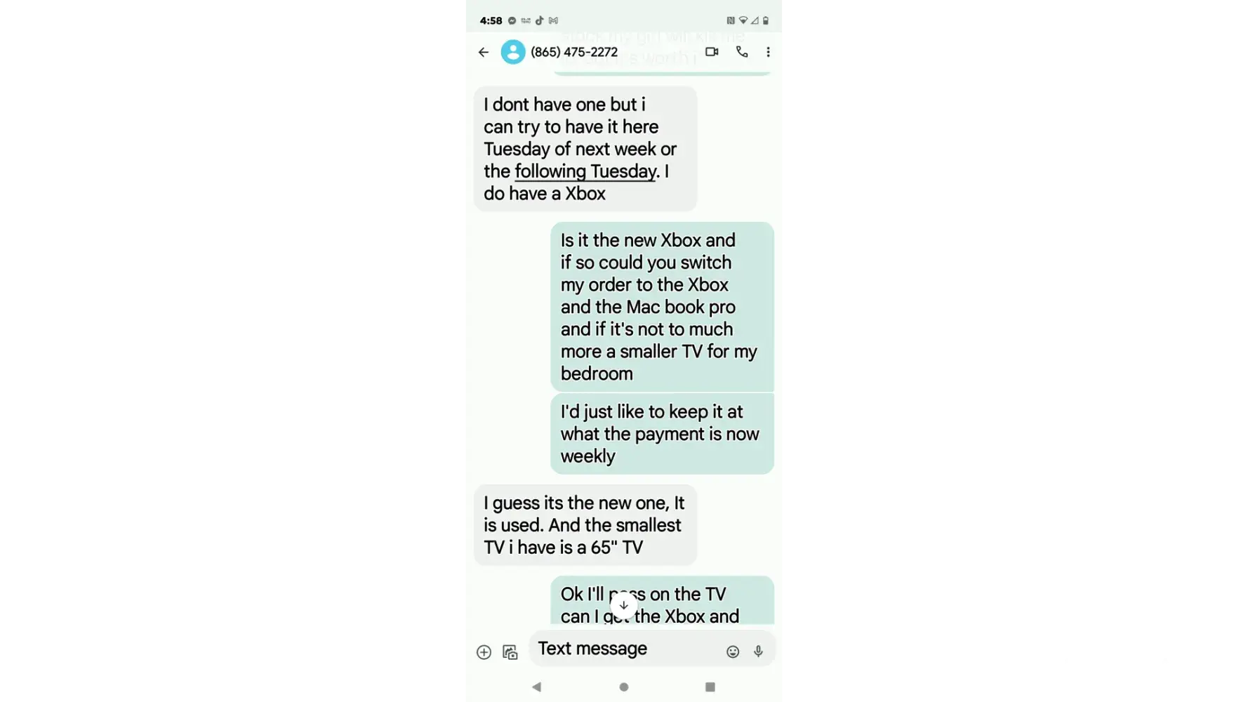 I ordered three things online which were a ring for my engagement a tool set the 6 piece porta cable and a laptop after placing my order I was told they didn't have any of the items I ordered and it could take weeks to get them so I'm not hard to get along with so I had the change my order to a different laptop and cancel the ring and porta cable tools that I really needed and replace it with the Xbox they had in stock only because I was told a refund wasn't gonna post my account for possibly two weeks I done this with the guarantee that delivery would be the next day so i canceled a small job i had and the trip i had planned after work with my fiance and son and sat home all day just to be told at 430 pm that they forfot to put me on the list and would have to reschedule after texting them multiple times through out the day start at aroumd 11 am i feel this is horrible customer service and just rude to be honest and now i have to call into work .Monday and lose 180 dollars to sit here all day again i can forward messages if you would like the stire i uaed was in jefferson city tennessee i really feel like something should be done some type of compensation my name is joshua fortenberry and my phome number is [protected] and as you see when trying to fix this problem she wouldn't even reply