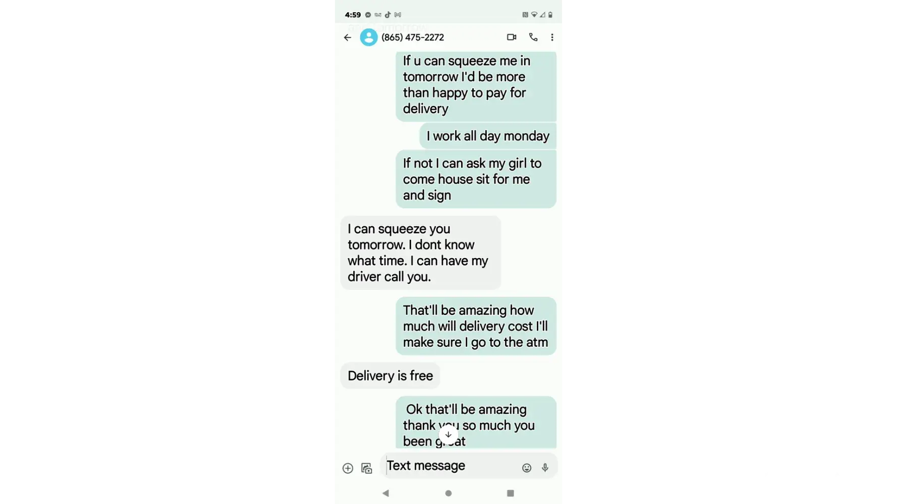 I'm a customer at American Rental in a local town, and I was a week late on my payment. I informed the store manager in advance about making a double payment today. She agreed it was okay, and we've communicated thrice this week. She reached out for payment, and I confirmed this morning my visit for today. Then, an employee unexpectedly showed up at my place, waiting in my driveway. I reiterated my plan to him, and after returning inside, he lingered for a while longer. As an employee at a similar business, I'm aware that such personal visits are not standard protocol and feel like an overstep, especially since I've maintained clear communication.