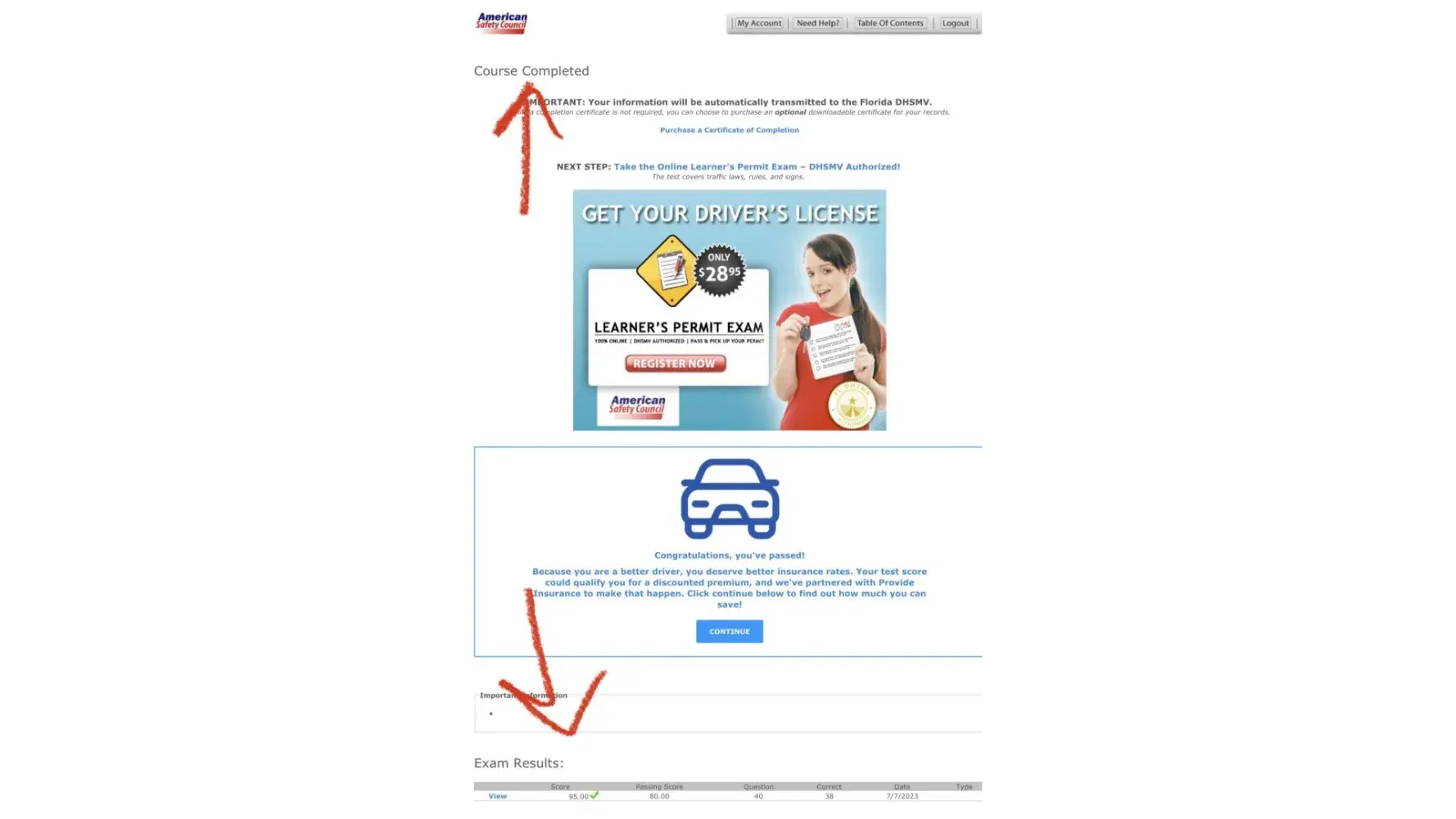 daughter passed the "First Time Drivers" course on 7/10. appt at the DMV on 8/4. she was refused her permit lic due to no forwarded "S 10 digit code Daughter, 15 took the First time drivers 4 hour course ( ***) and passed the exam on 7/10. Site says, "automatically reported to the DMV" with NO time frame, No follow up email, No information what so ever. So we waited over 3 weeks So I made appt with the DMV to gain her learners permit on 8/4. She was denied due to NO forwarded information including the "S" 10 digit code from American Safety Council or the First Time Driver School.com to the DMV, completely ghosted and I had to comfort her broken trust in the system. I have submitted 2 emails to ASC on 8/5 and again on 8/10, absolutely NO response. My daughter spent 9 hours on the 4 hour course writing down notes and studying, she had gotten a perfect score of 100% on the exam. School is starting soon and WE wanted this learners permit to be completed as to not interfere with her schooling, we were completely let down. The DMV said that if they recieve the "S" 10 digit code on that test since we came in there inquiring about it that it would not be honored. I asked in an email to the "First Time Drivers" school which is accredited by the ASC and the Complaintsboard.com for them to allow her to simply retest so to show a new date of her "retesting"... no, zero response. Why is this happening? are you really going to ask my daughter to sit through the 4 hour course again? I dont need a refund, I'm asking for the opportunity for her to "retest" asap without the TLSAE course repeated... if you cant do that than refund $39.90 + $8.95 (certificate) and I guess ASC has failed her and she'll have NO CHOICE but to retake the entire course... completely disappointed with this system and unfair to say the least. Trust and Respect is lost. Ive made endless calls, chats and now a 3rd email. ugh