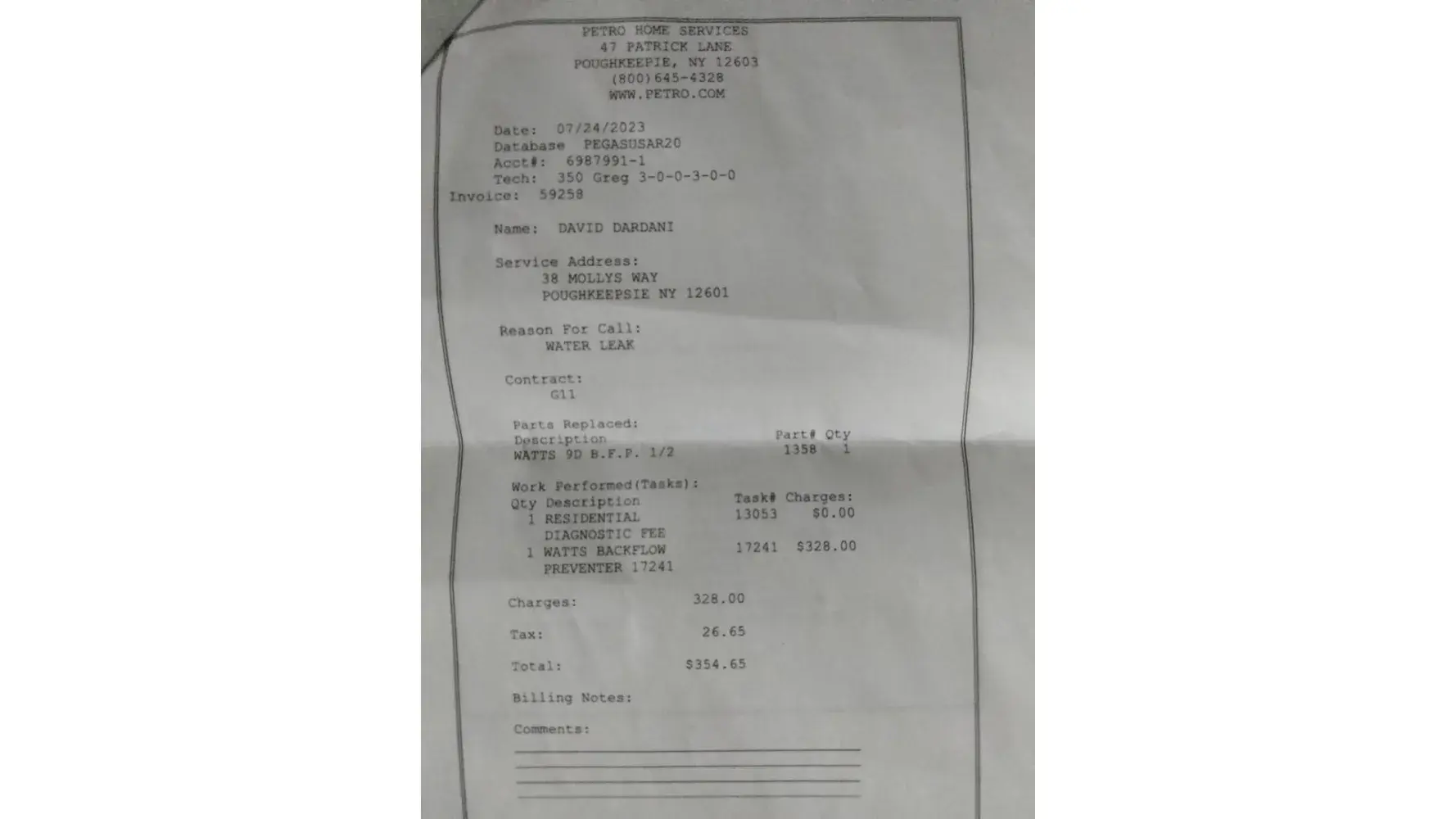 Then, on September 21, 2022, we encountered our second issue with the system. This time unfortunately, it was much more severe! Apparently after only 4 summer seasons, there was now a leak in the evaporator coil. At this point, the unit is only 4 years old and needs a major repair. We were charged $259.49 for the service call and diagnosis.