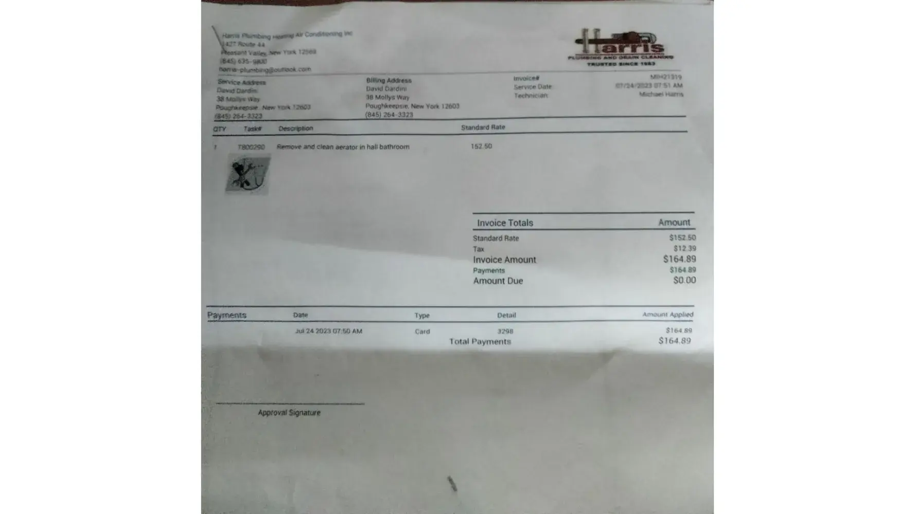 The unit had provided great cooling and efficiency until June of 2020, when we encountered out first issue with the system. The AC unit shut down and the lights on the handler were blinking red/yellow. We immediately called Charter Oak Mechanical and they determined that the wiring had come in contact with the blower motor and shorted. Because we could not determine if the wiring issue was due to not being secured properly at the factory, or an install issue, I paid the $185.69 on June 8, 2020 to correct the issue.