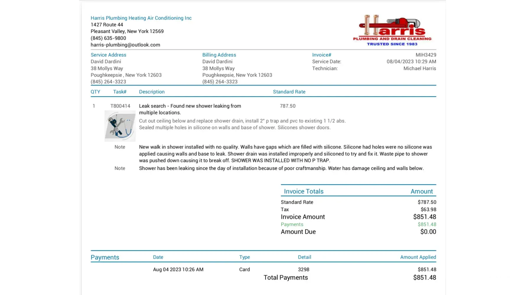 American Standard took over 2 weeks to do a 1 day tub to shower conversion. The install team caused the bathroom sink aerator to clog and the furnace back flow preventer to clog. This was caused by repeatedly turning on / off the house water. The finished install looks terrible, seals are not correct, molding was ruined, and since the shower was installed without a P trap there was a water leak onto the first floor ceiling and into the basement. The ceiling and wall need to be fixed and painted. I have been told by American Standard that someone will contact me to assess the damage but so far nothing has been done.