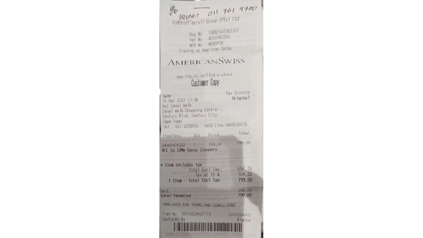 I purchased this 9ct gypsy sleepers on the 16th of december 2022. It's changing color and breaking off were it's welded. I took it back to the store I bought it from in canal walk and they say they can't do anything about it. They can send it for repairs when I read through the paper it says i'm liable for any loss. I'm very disappointed and upset about your quality of jewelry as well as. The service I received.
