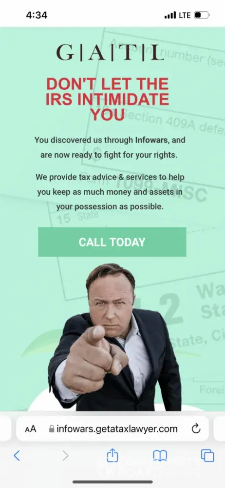 This company advertises their ability to greatly reduce tax bills using legal loopholes and strategies for regular people, as their main selling
