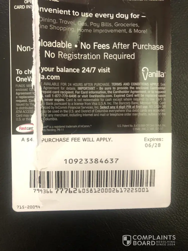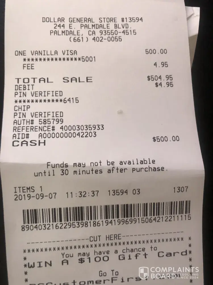 Verified customer This complaint was posted by a verified customer. Learn more