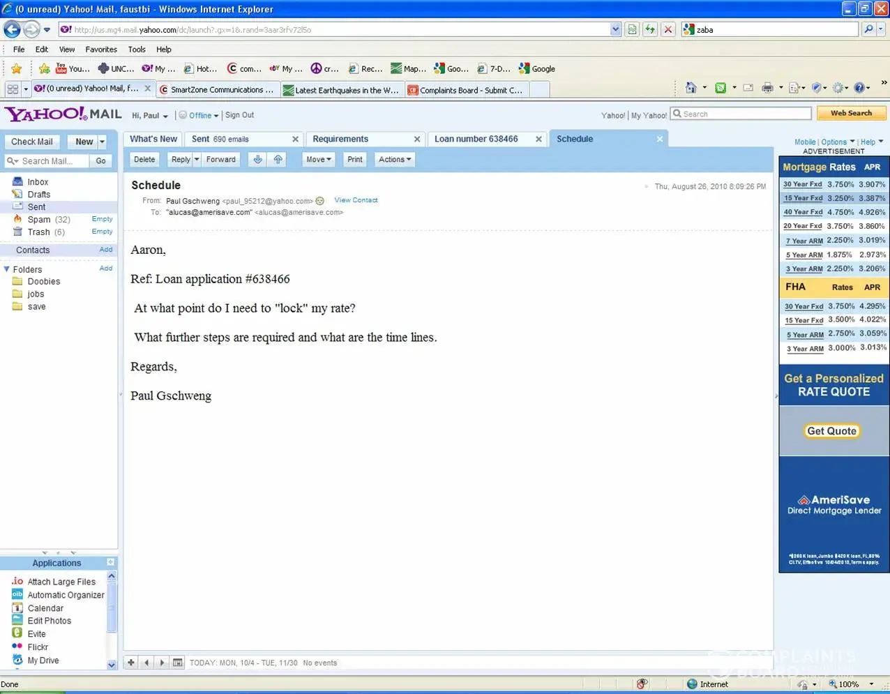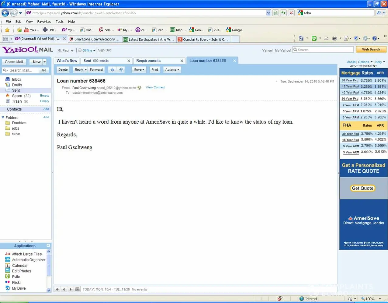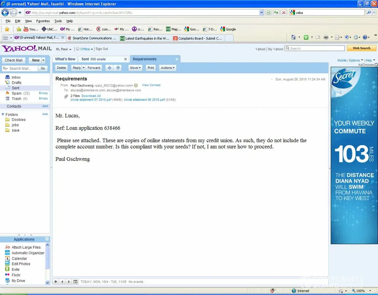 I had sent Amerisave many, many personal documents including bank statements, bank account numbers, personal tax information, retirement information, etc., etc.