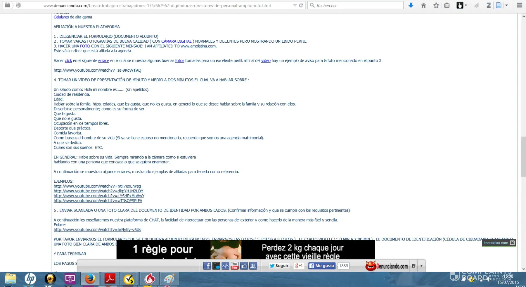 On exemple in spanish: The Web page in Colombia of the local agency : they recruit pay woman from 18 to 41 to chat with man 1 mn = 100 pesos. They can chat with 10 men a the same time and tehy are paid x10 and they are not allowed to exchange email adress or skype or Face book.