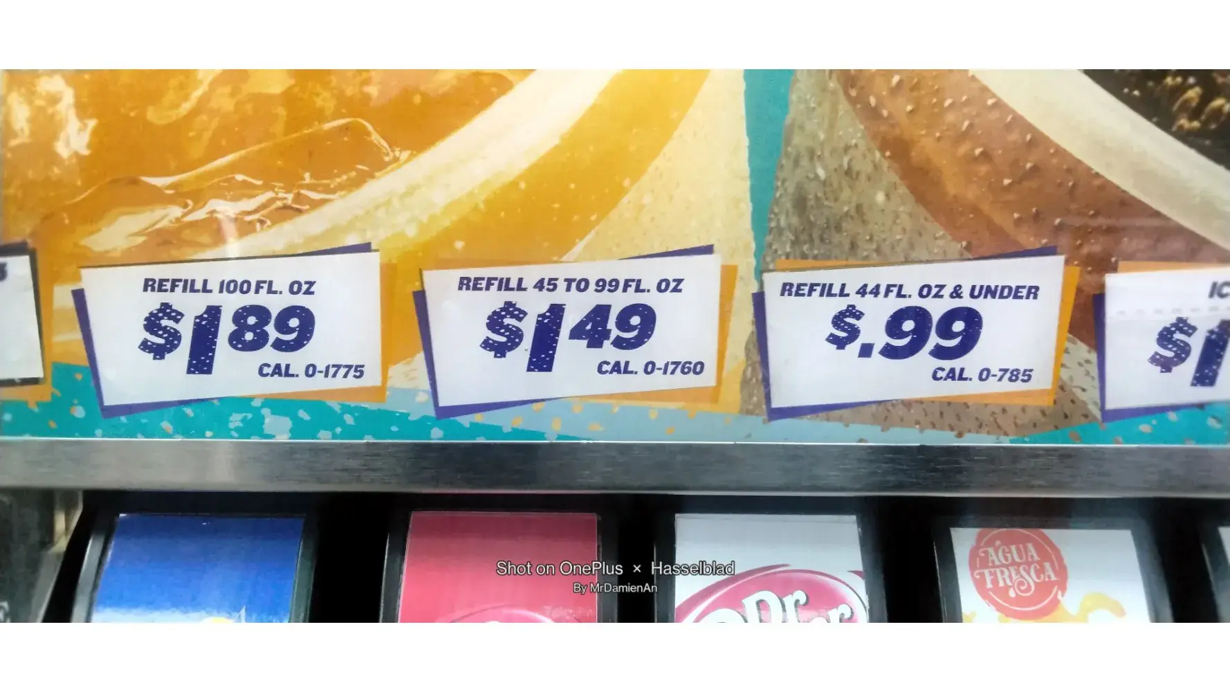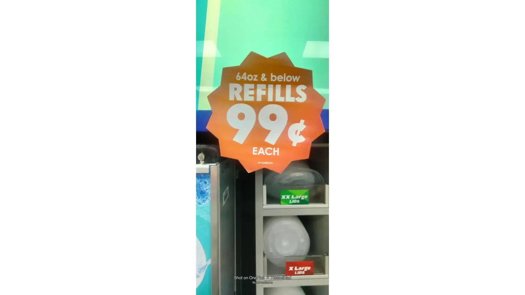 On the machine itself, inside the store, another sign specified, again, large or small drinks for $2.00