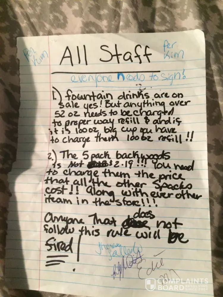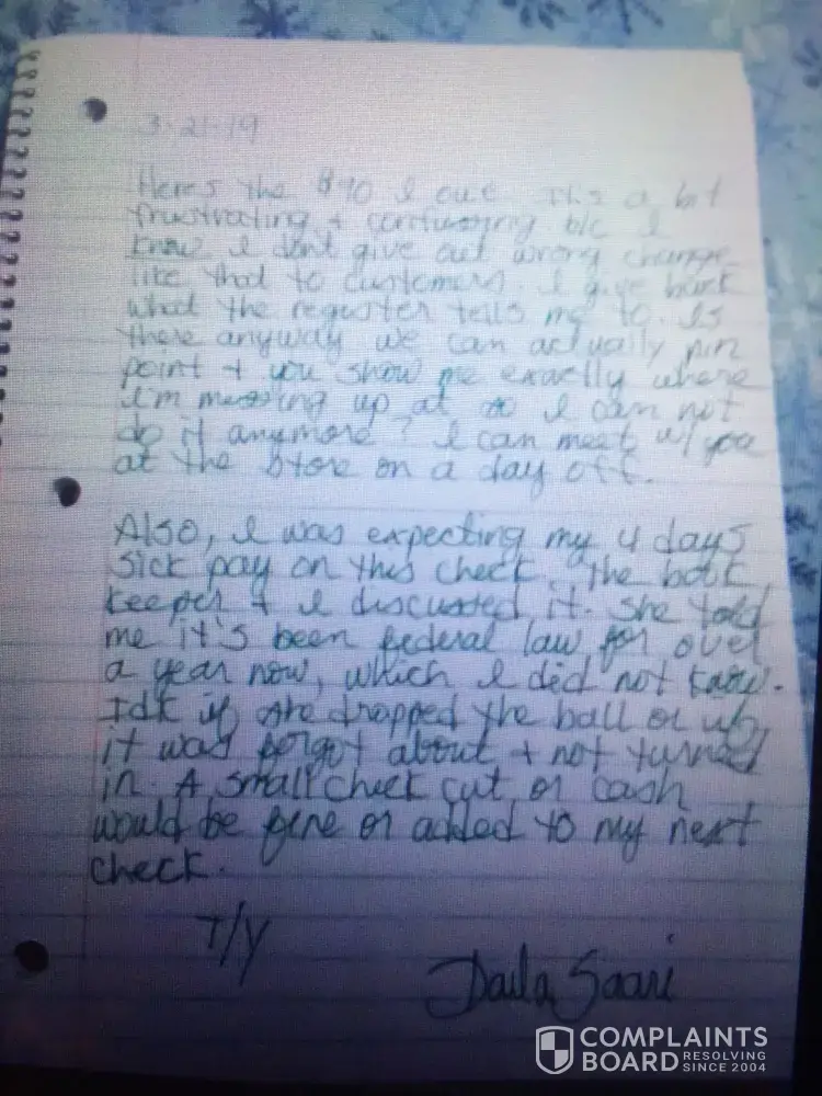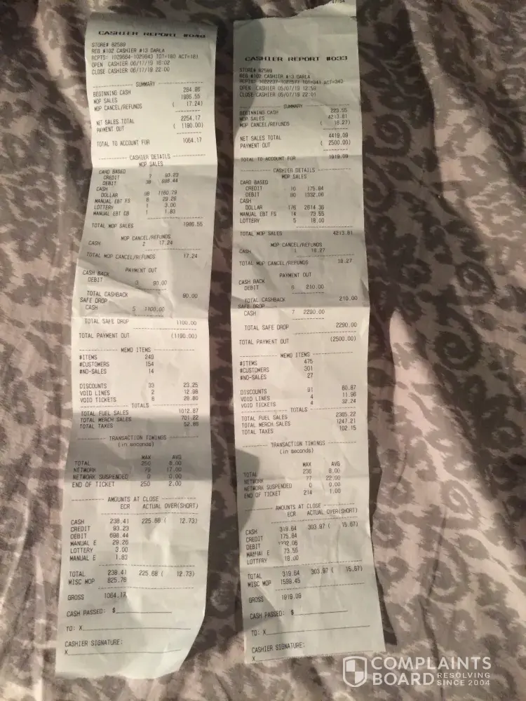 Read full complaintCashier