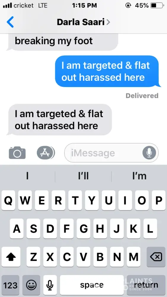 Read full complaintHarassment