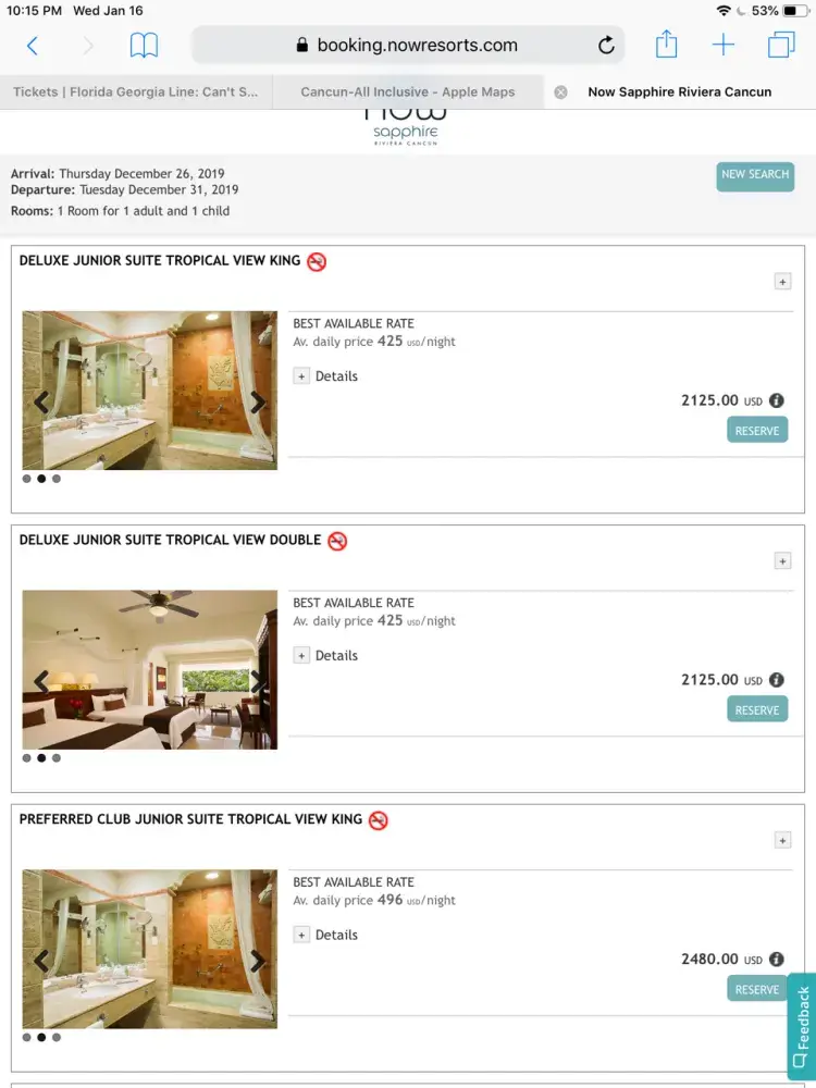 I stayed at Now Sapphire and was overcharged for my daughter as an adult. I was told it was $113 and the credit card was charged $1113.50 on 12/26/18. I found on Now Sapphire's website that the difference between a 12 year old and a 13 year old was $41 for the exact same room at the same time of the year. I was over charged significantly. Plus they quoted me $113 and charged me $1113.50. I would like a refund.