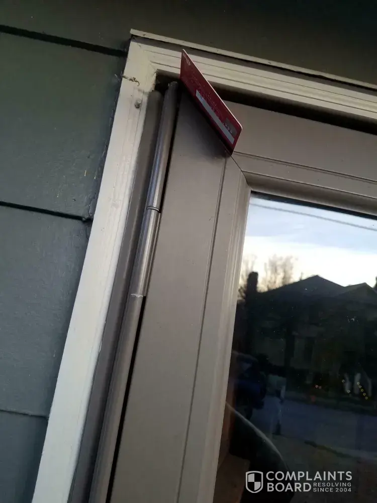 Door still not in no schedule date and when the install person came they said they couldn't put back the above door trim.