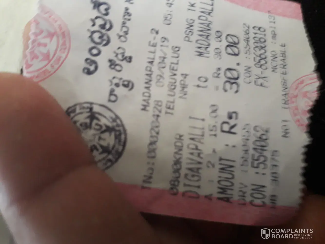 Hello sir, I'm N.Bhanu vardhan, a student pursuing engineering, i am traveling in a bus related to the depot of madanapalli 2 . I've asked conductor to give me the ticket to Vidyanikethan college, but he has charged me with Tirupati ticket. When i asked him he said that after rangampeta all comes under Tirupati, but i know that there is mangapuram after rangampeta for which the fare is 45 rupees. Is it fair to charge me with an extra fare of 20-25 rupees? Hoping for your immediate action