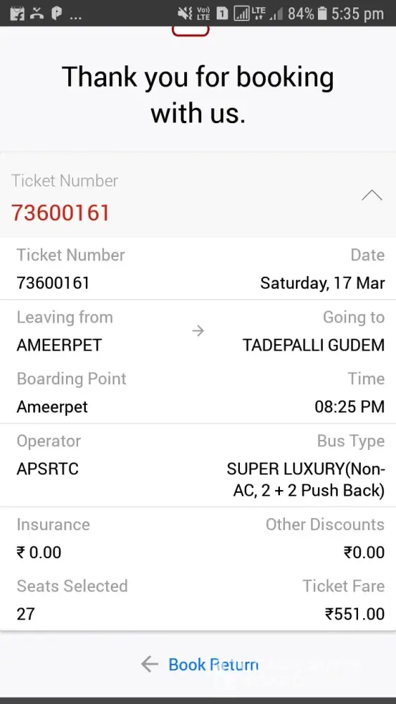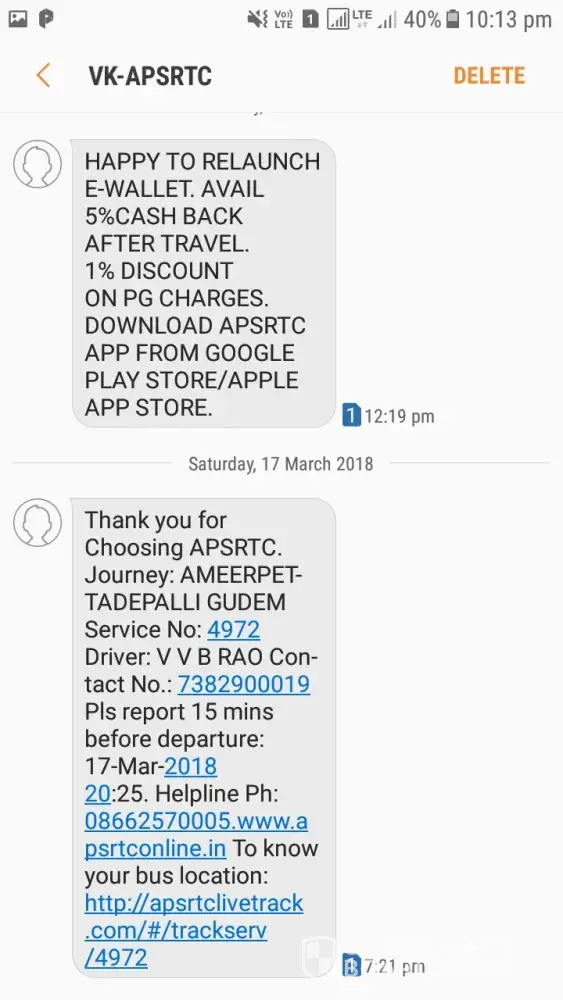 I respect & like the Government services that's why i booked APSRTC bus even we are getting private buses for less price.If it is like this definetly i will never book a bus of APSRTC.I think APSRTC will take this as serious.