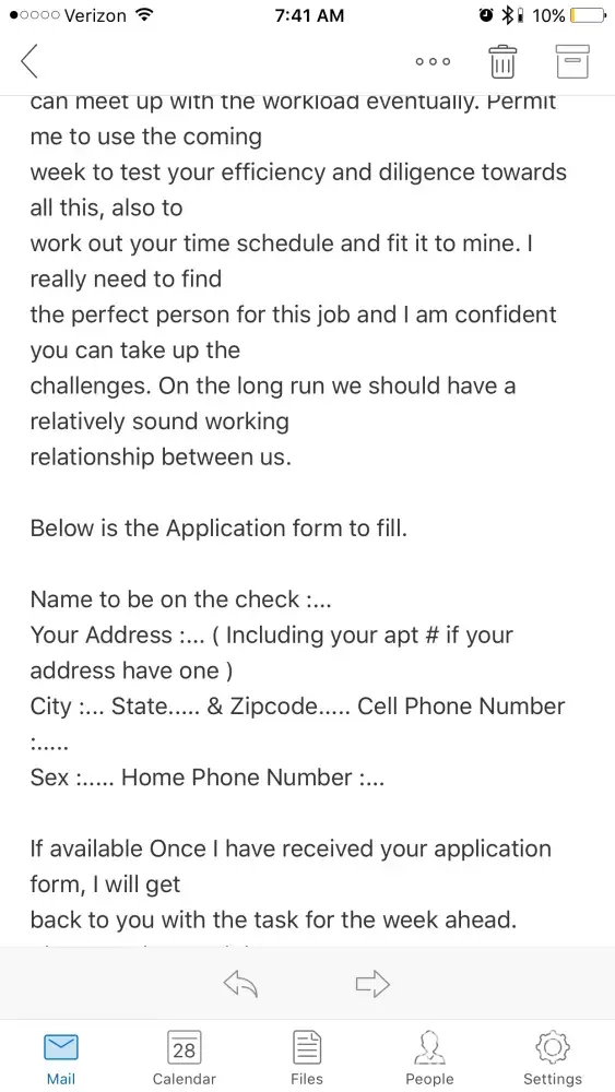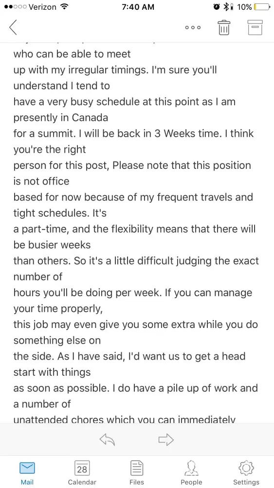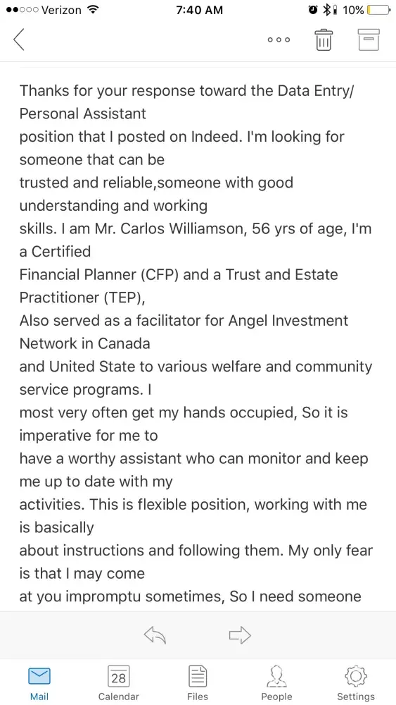 I responded to an ad on craigslist for a personal assistant and received this email from the person who placed the ad: