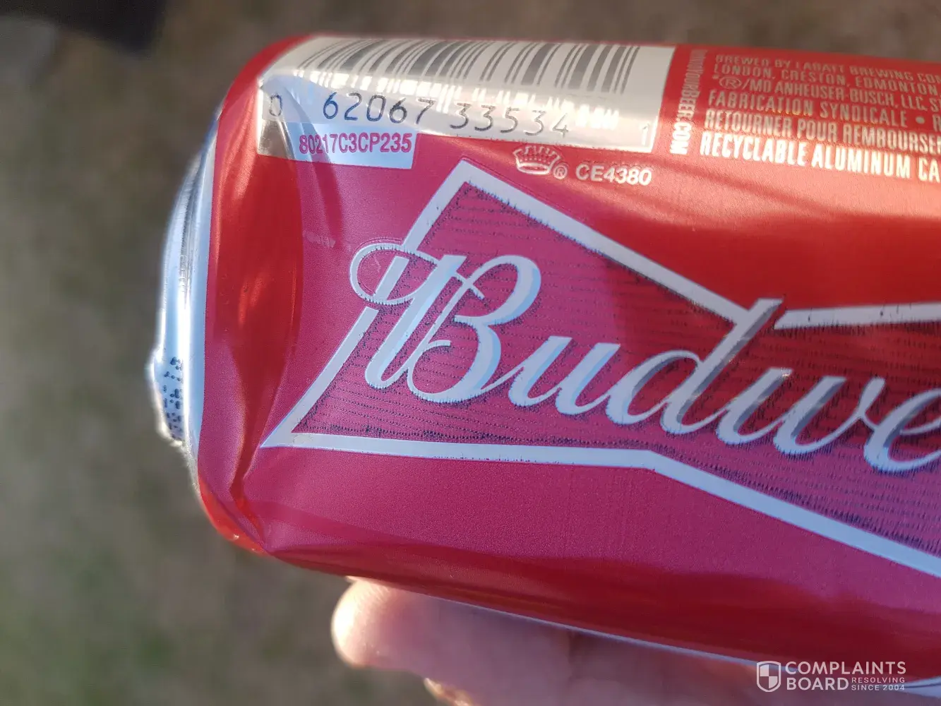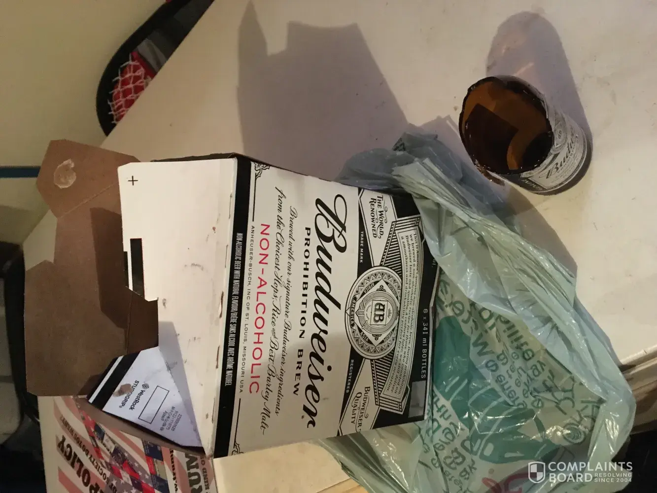 I reached into the box and pulled out an unopened, empty beer. It looks like the case was dropped and the bottom tore open. This is not the first time this has happened although it is the first time I have complained as it happened right before the long weekend and I am already at our campsite. I have not checked the remainder of the box. I would like to have this resolved as soon as possible as my husband and I are avid Budweiser consumers and do not stray from the brand.