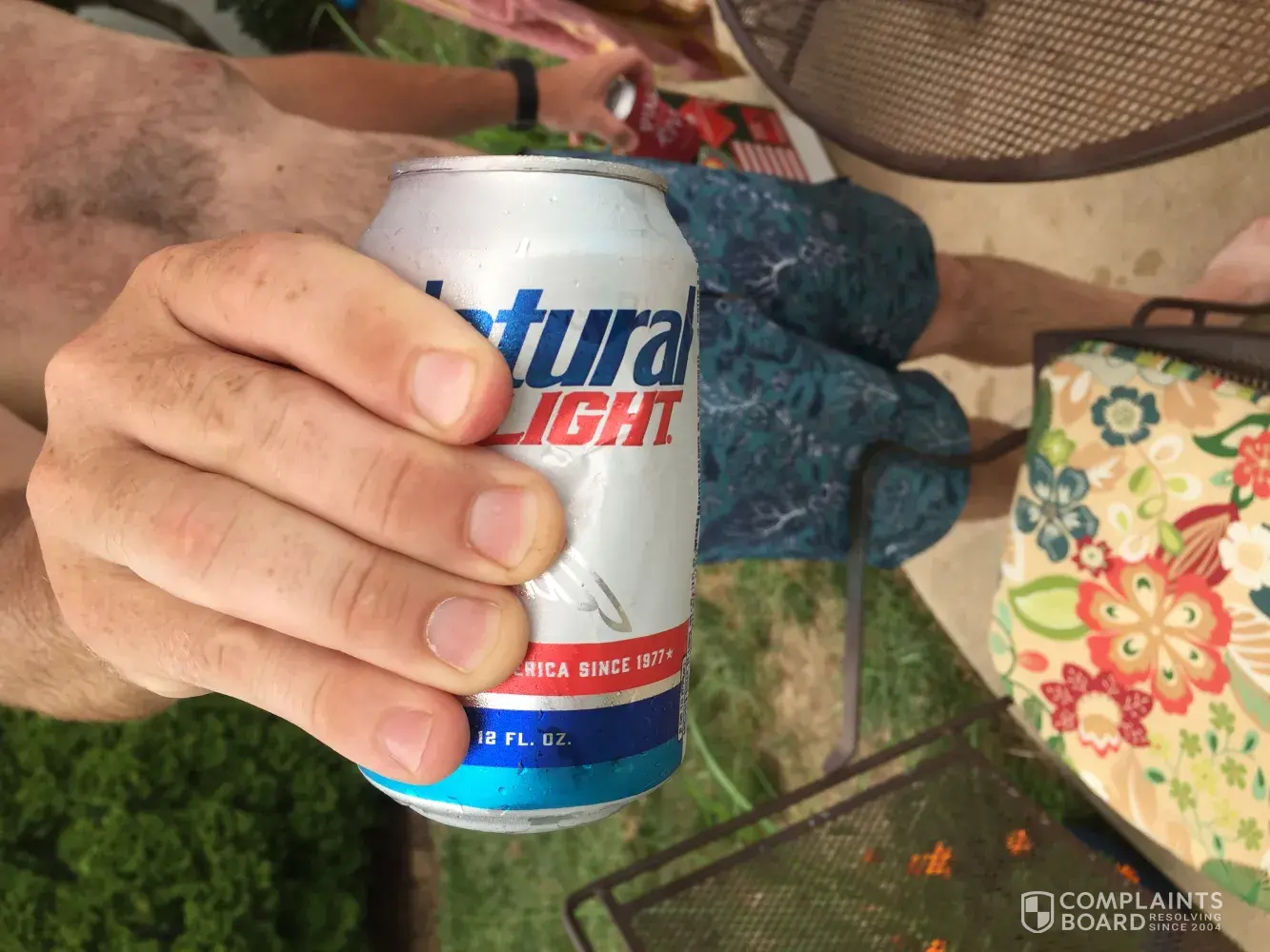 We bought a 30 pack of Natural Light on Sunday at Schnucks in st Charles. One of the cans did not seem to have 12 fluid ounces in it and could be ‘squeezed' I have attached 3 pictures to show the can...it was weird. We weren't sure if the van was safe to drink, therefore we threw it away. I have been buying Natural light for about 5 years and have never encountered this issue before. Hopefully none of the other cans .