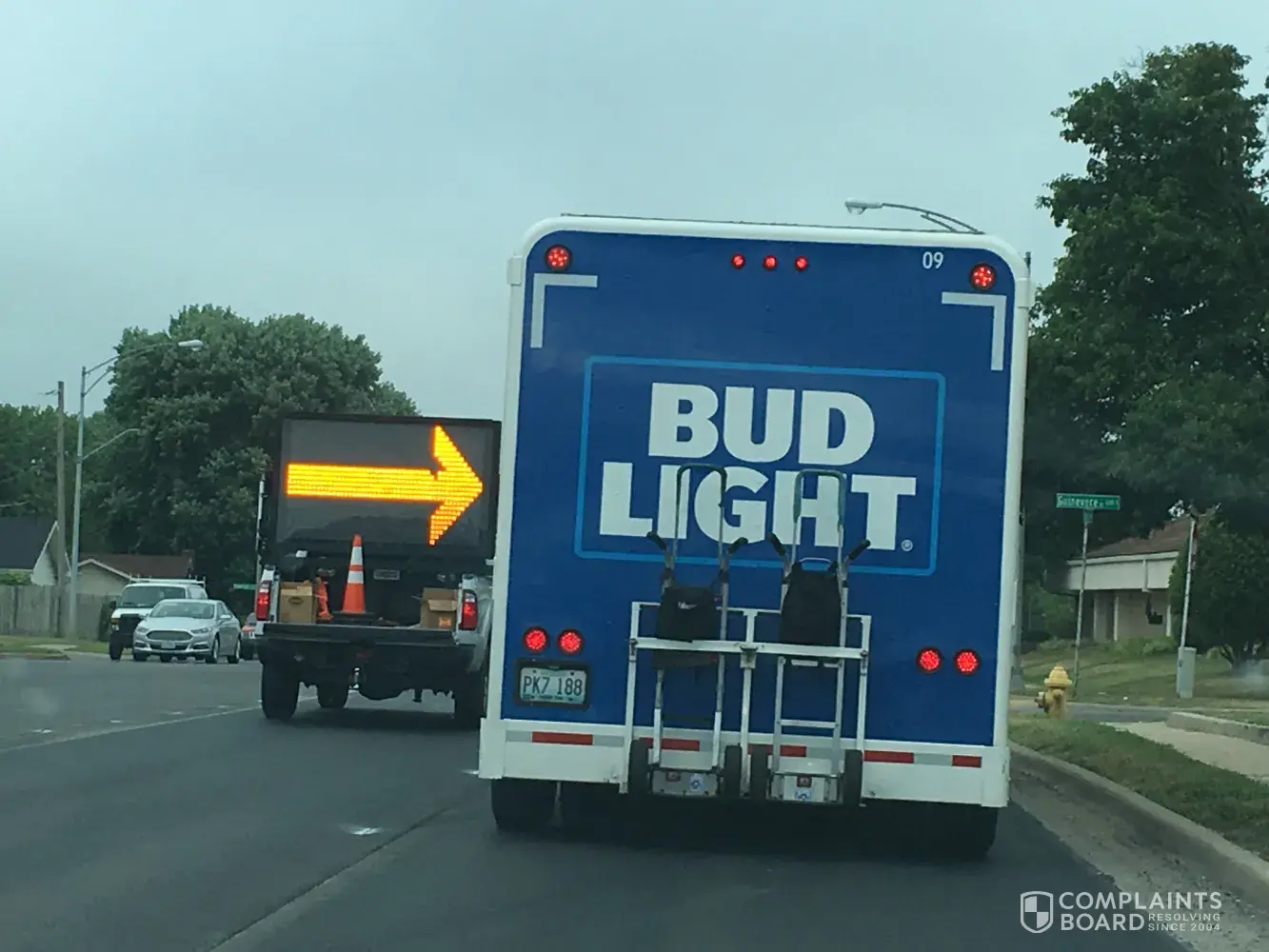 I was In Springfield Missouri, turning north on national from Battlefield, the date 07-19-18 at 9 am, when one of your Bud Light semi trucks came in to my left lane almost hitting me and forcing me to stop and honk my horn while he continued into my lane. I could've been in a big accident. I'm thinking about filing a police report because that is dangerous driving. It's a Missouri license plate, number PK7 188, truck 09. I have photos. I expect to hear back from you soon. Your drivers need to be responsible and not run people off the road. I'm shocked.