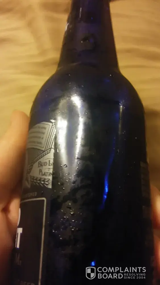 In the box there was broken bottles of platinum and some bottles had dents..and it had obviously been done awhile before I bought them because the box showed no signs of wetness..I live budweiser. N have it tattooed on my arm and I buy at the least a 12 pk of platimum a day..and i understand accidents happen but this is twice Ive bought a 12 pk with broken bottles.