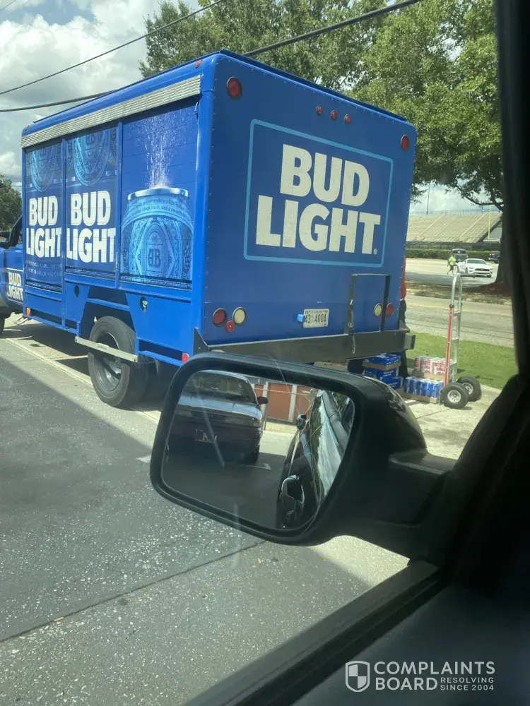 I was entering I 24 West from Highway 49 in Pleasant view, and observed hey bud light truck Move over to the shoulder of the road, pass five or six vehicles, and then re-enter the Entrance ramp. This was around 330 p.m. on October 14. The only distinguishing numbers I could see on the truck was on the drivers front fender end it said A240. This was a smaller combination vehicle, not a box truck.As a business owner myself I would imagine you would want to know about a complete disregard of safety such as this