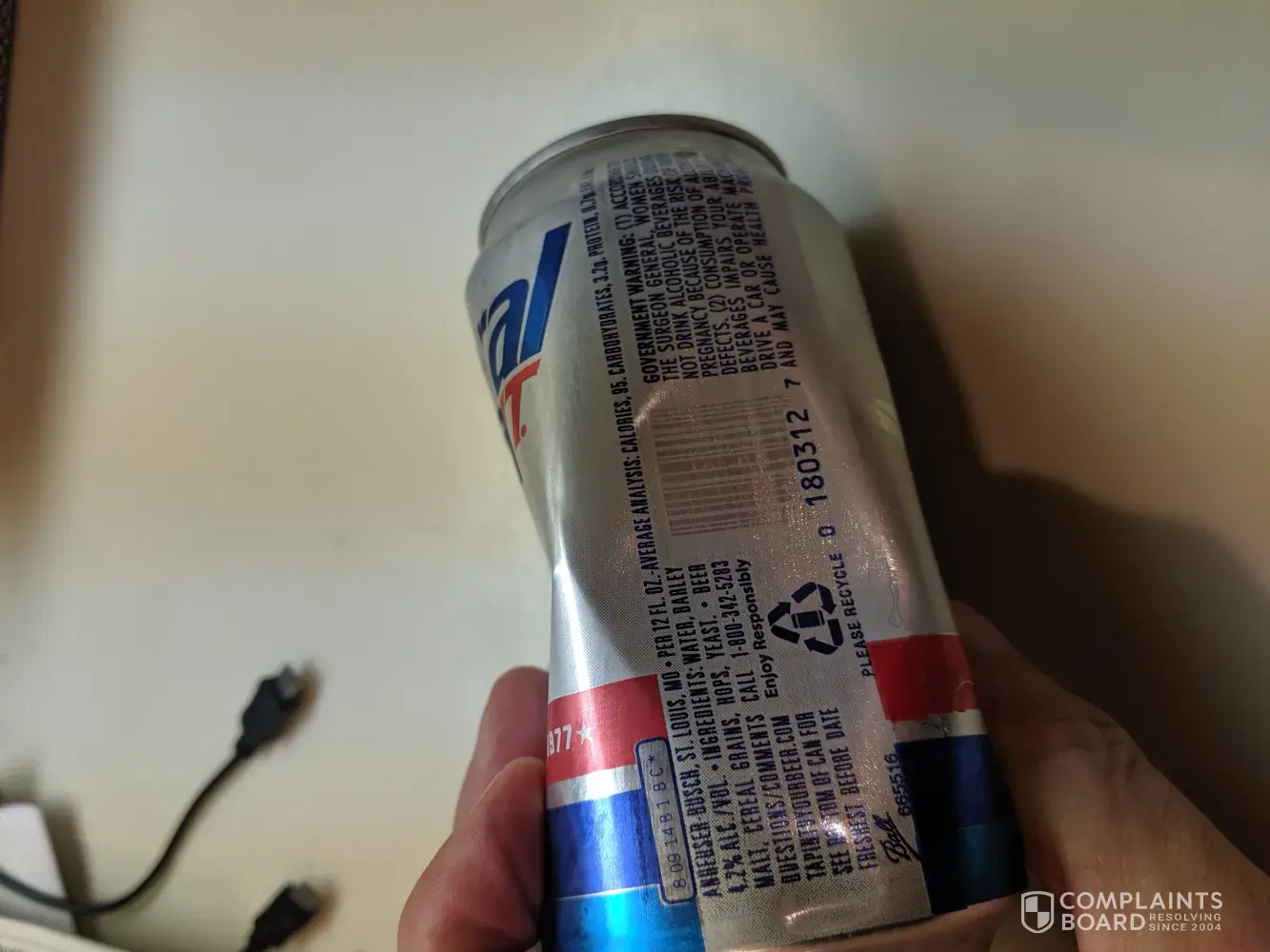 Three pack of bud ice one can deflated and small pin hole also some kind of. Rust on top of the can at this point I'm totally disgusted with the fact that I have to buy beer that has Rusty Lids broken pull tabs or pinholes and crushed cans from this dealership this is a problem you need to resolve and replace my beer immediately I appreciate your service and thank you for your convenient services mr. Edward dolansky