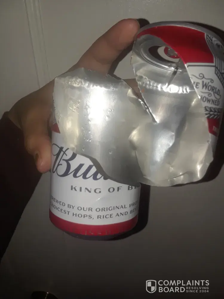 Opened our 24 pack of Bud Light and we had a can in the middle of the case that was deflated and had dents. Found out it had a hole and was leaking. Dont know how it happened or what happened but we are disappointed because we are die hard bud light fans. We will not stop drinking bud light but just wanted to let yall know a can was punctured and flattened when we bought the 24 pack. We would appreciate some sort of feedback. We have provided a video that shows the beer we pulled out.