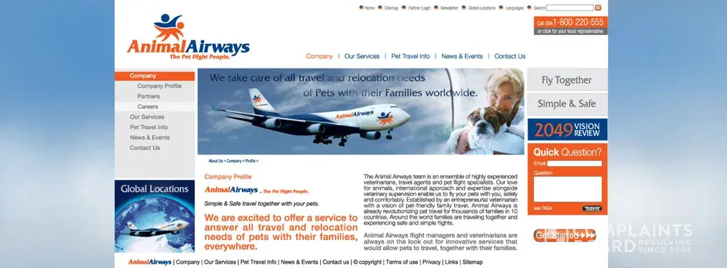 Animal Airways’s earns a 1.0-star rating from 0 reviews and 3 complaints, showing that the majority of pet owners are dissatisfied with pet transport services.