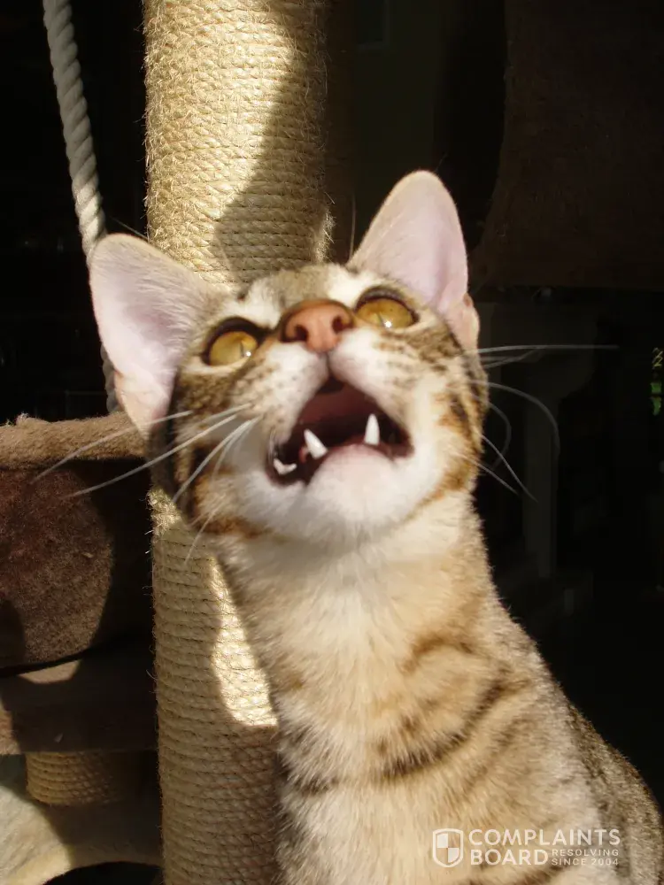 Warning ! Rachel hartley : sitting pretty cattery, savannah and bengal breeder I reserved a Savannah kitten from Sitting pretty (2010/10) but this kitten died at the cattery at the age of one mouth. The breeder (Rachel hartley) then offered me his brother "Sad Sam" and I accepted. When the kitten arrived here in France (2011/01) he was very hill, small...