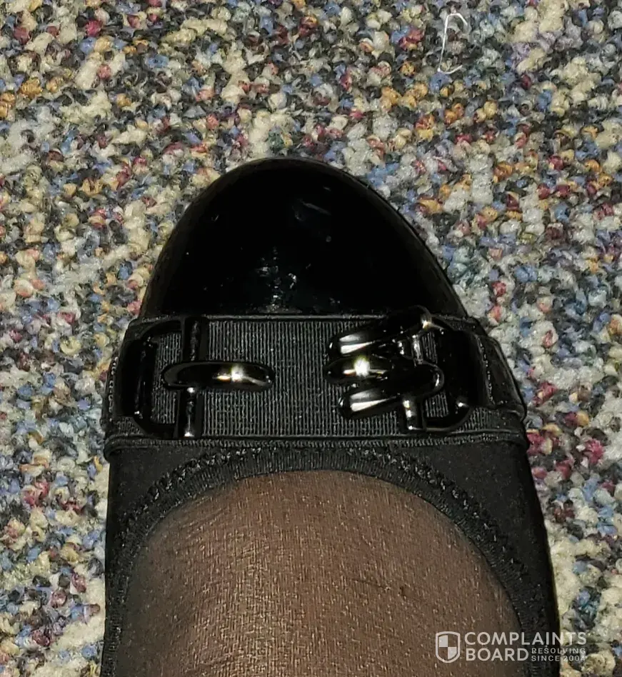 I bought this Alexa Ballet flat shoe from Steinmart a month ago, Today as I write this complaint is the first time I am wearing them and they have only been on my feet for 4 hours. Upon wearing them I noticed both shoe rubbed the side of my heel, so I cut a large bandage and that have solved the rubbing issue. Then I noticed, I was making clinking noise as I was walking and look down the metal detailing link on top of the shoe was broken. I fell in love with them and hate to have to not wear them again...since I am breaking them in to my feet. I don't believe the store has anymore since it was on their discount rack and there was only this one in my size (7). I am requesting a replacement or repair, if all possible.