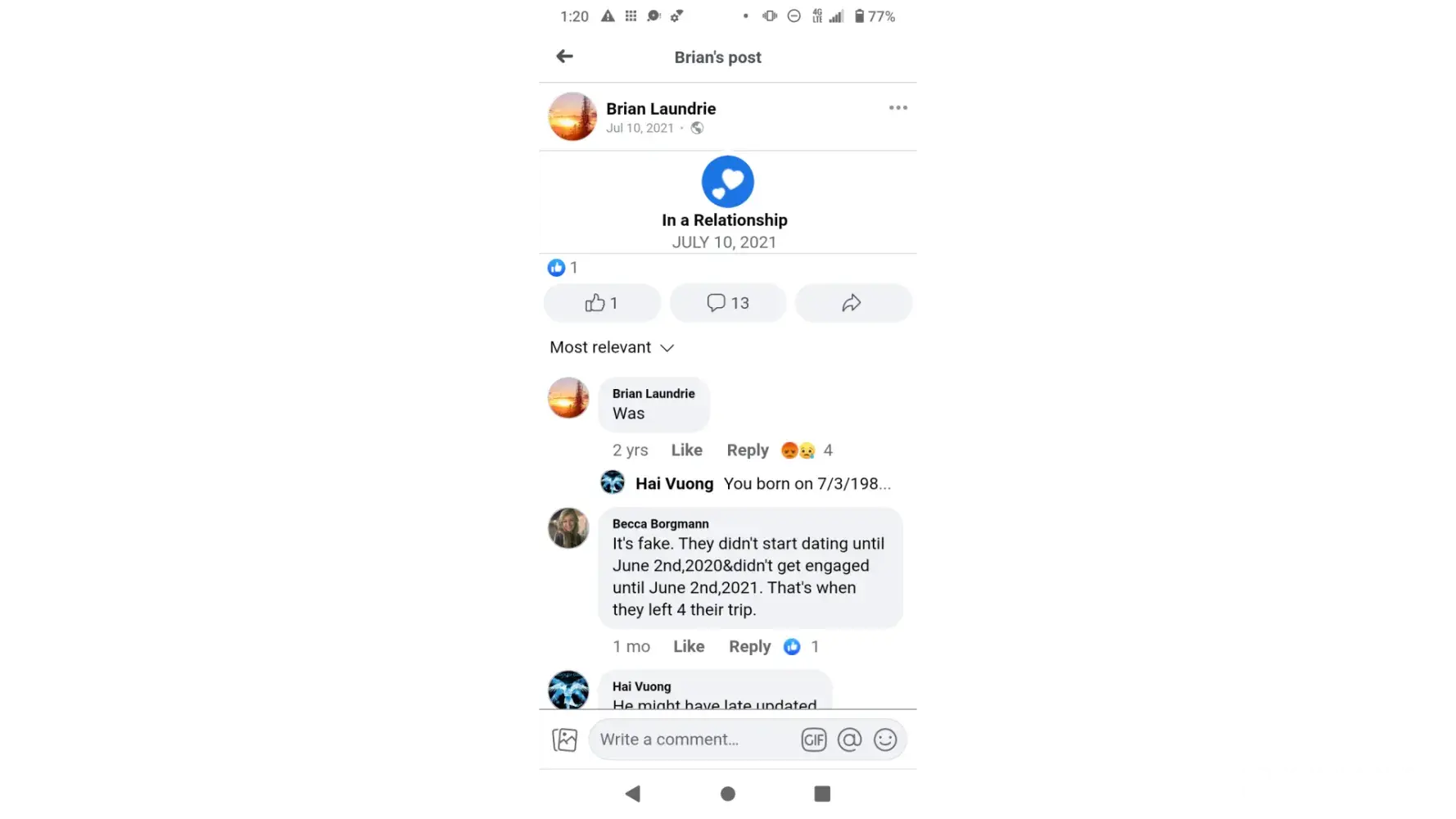 Brian Christopher Laundrie, age 25, used to live at 4343 wabasso ave, north port Florida, who murdered Gabby Petito on 8/27/2021, was abusing her capitol 1 bank card and found deceased at myakkhatchee creek environmental park on 10/20/2021, obviously, Roberta M Laundrie, who called police on bounty the hunter, Dog Dwayne Chapman, to not go search for her son on 9/25/2021 after caviar Dogs couldn't smell the human remains, 3ins and 2outs at Carlton Reserve when the Laundrie made their two short camping reservations [lawyer Steven Bertolino said that he came home on 12th and left on the 13th of September 2021] and Brian Laundrie couldn't be at myakkhatchee creek because he was accessing on Pinterest (saving @lolroses's post, https://www.pinterest.com/pin/645914771565096021/, see at attachment 5&6) on 10/15/2021 under his handle: blaundrie1197, when they found him dead since 9/8/2021 it says on his find-a-grave post, see at attachment 3&7, http://findagrave.com/memorial/232315490/Âbrian-christopher-lauÂndrie? fbclid=IwAR0PdÂTUEAw60Ie7BslV1u2IPEÂgCqUENZqNCD-0 — 0j_XuÂoLYi80Jit3EbZA. Whether Brian Laundrie, see at attachment 1&2, is dead then why on Facebook, https://m.facebook.com/profile.php?id=100070509852972&eav=AfZ7yHH7kyN3wvMPVXfHRbgDW4fo4DcSIF71HYG2gzctdbgcF35PJPDf4Fh2ctE3mP4&refid=46&__xts__%5B0%5D=12.AboYZKiy_D6Ez5IdSTnq0mOO-Qzj5a7Ms_E8yNgiQ10psY-jdBkQKlBsPiFehfa2P6mnkjCicct8o4d3OXp551xoDhtY7Ll4K8SBK4qzUu0Jd6uS68LJUkyHnty9Zz_wmBVJSNaQDMA852BCyb8XzWzNDYsc46L5n7xsEiI8h2PyMHFe80JT0_WgX0sOo4F8kjE05AT392MpIFdd_uGCWrlm-iyqtTPv7Y9RoPy3X_S3rEjnPt5ICbF7CwErYRRG8YxTA6IWsIeYQ5xNgdxZdKqfzIEnjMN6Zojz-uEoyWbMMlik4ypuIlxNI8MSTqWpAA1ltPYEaIWSvPUo_t-YzDUKujr_li29ia178uikHAF_JqxTqeKojhit8K4hORzOwUO5jRISgzVkn310lLfwexdeTNBj3IYzfElh_l8y5AkWONG9wfbAZ4CNzl07_ZmIz61C_rFW4qaVBSUX0GYHblBqC13oFxAbBx2LMEQ9AJA8QOuaPE5gfUFkpMi4OObYl4uyt4uyPBTjsLtFnRAyC4lnGXKJ-5BYSzq_cVfdNYQiQGA1l0Dm0fOCHaGBgA_0eTcqao7qhsxcpFGP9N9Qsxor4hJ9BtRNR5rR5eOC7CA8xMlrttW-Gdp9ljBqzvW-208&__tn__=C&paipv=0, claiming that himself not dead, https://www.nbcnews.com/news/us-news/autopsy-brian-laundrie-s-remains-came-back-inconclusive-attorney-says-n1282259 and said it was cover up incognito. Joe, https://www.findagrave.com/user/profile/47507237, see at attachment 4, the creator of his find a grave, knew about his death and started his funeral on September 26, 2021 when his human remains was found on 10/20/21 by the fbi.