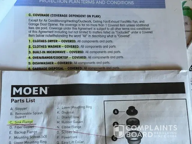 The next call to correct this issue was another tech saying it works fine and that have didn't have the MOEN sink flange in his truck, but if he did it would be $250 charge. Another call to CHOICE and to Anytime to correct this and there was a NO SHOW. I called CHOICE and Anytime and asked for my MOEN sink flange back, that my husband can do it.