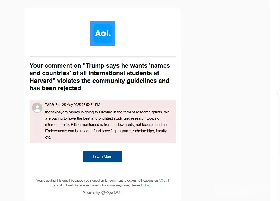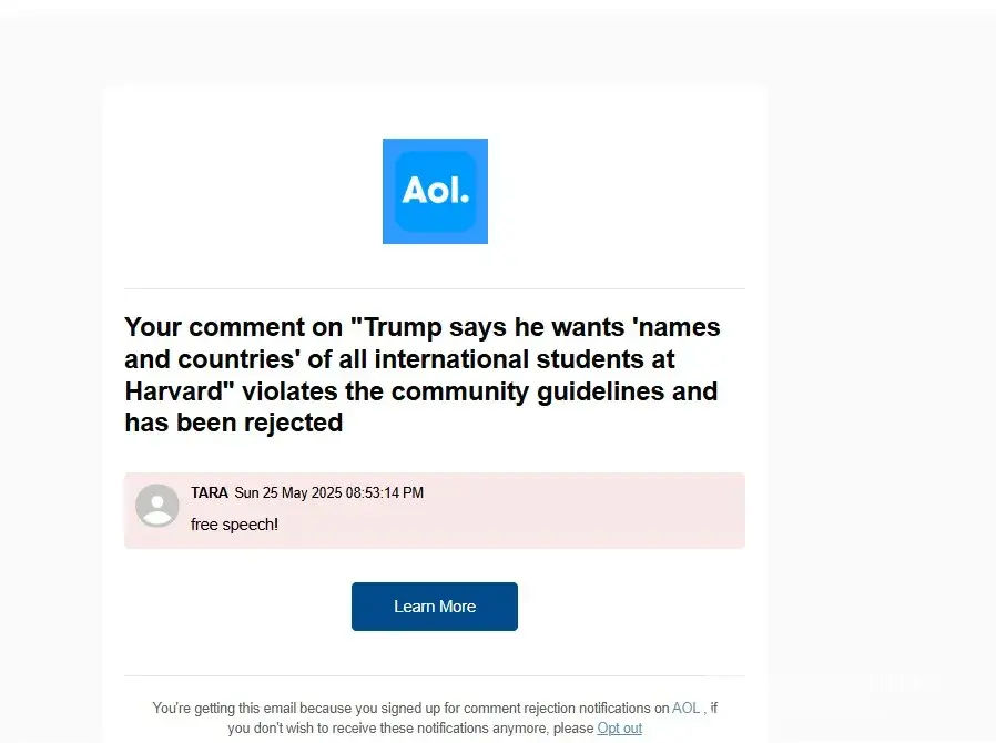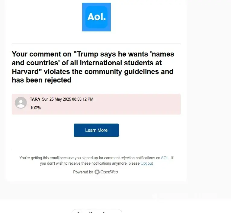 AOL my comment was rejected