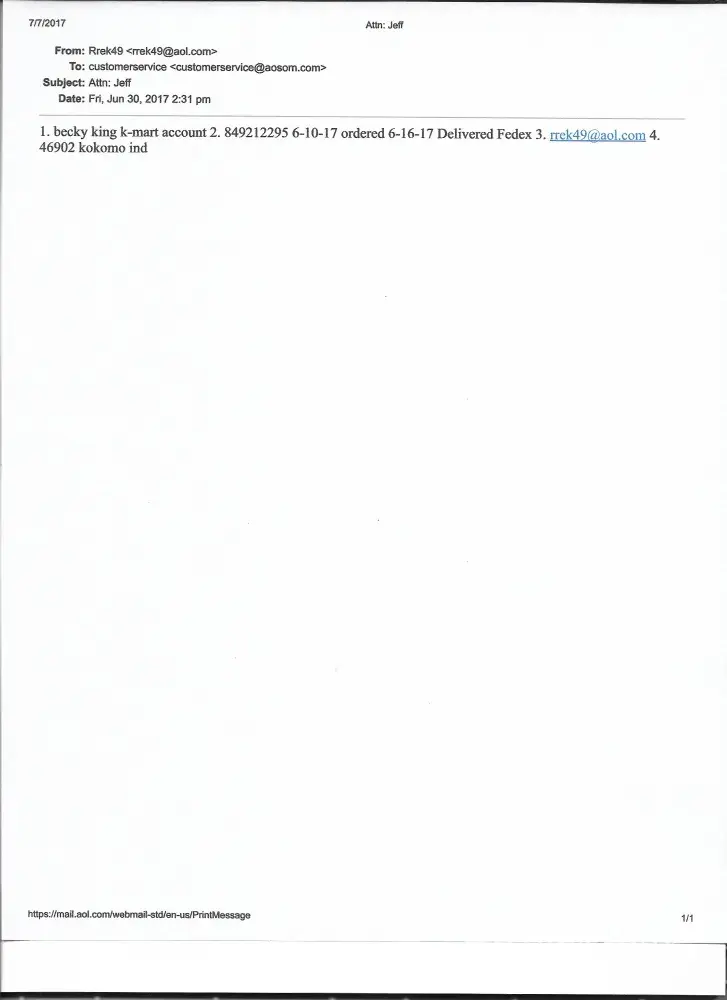 Completed a transaction with Aosom through their amazon seller account (see attachment). Placed order on February 24 with a promise of delivery between March 2 and March 8. Label was created immediately, however item was never delivered to carrier. Aosom does not maintain an authentic email with amazon so correspondences to Aosom bounced. There are legitimate integrity concerns as Aosom gets paid once shipping label is created in good faith they are attempting to send the item. It is dishonest to create a label two weeks ahead of shipping when item still has not shipped.