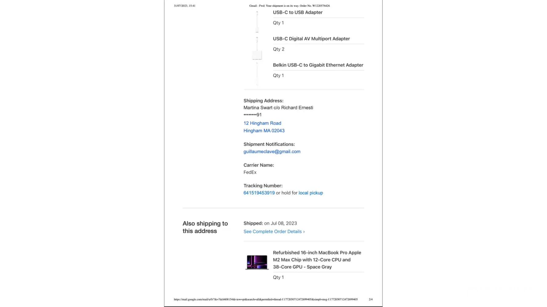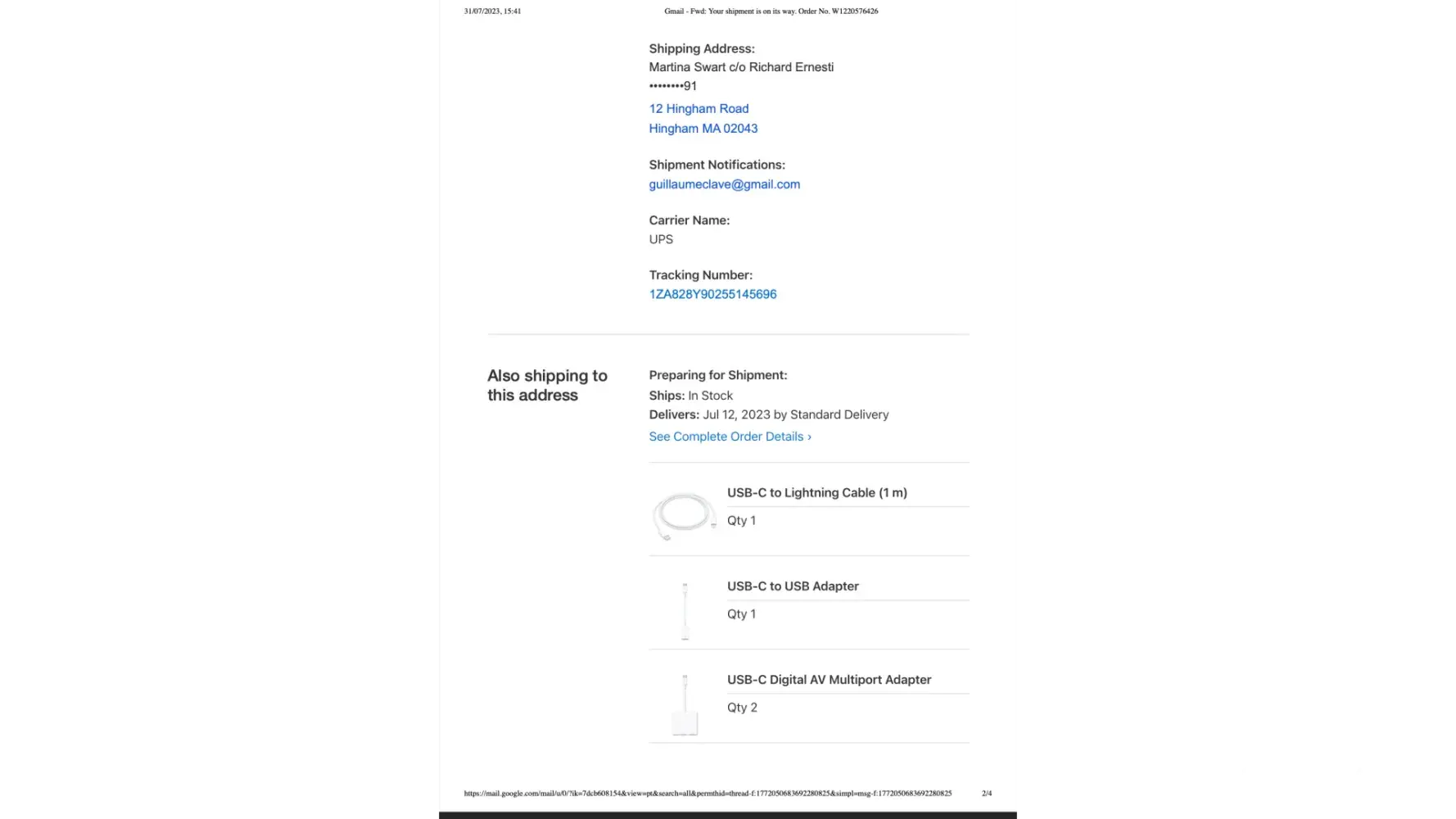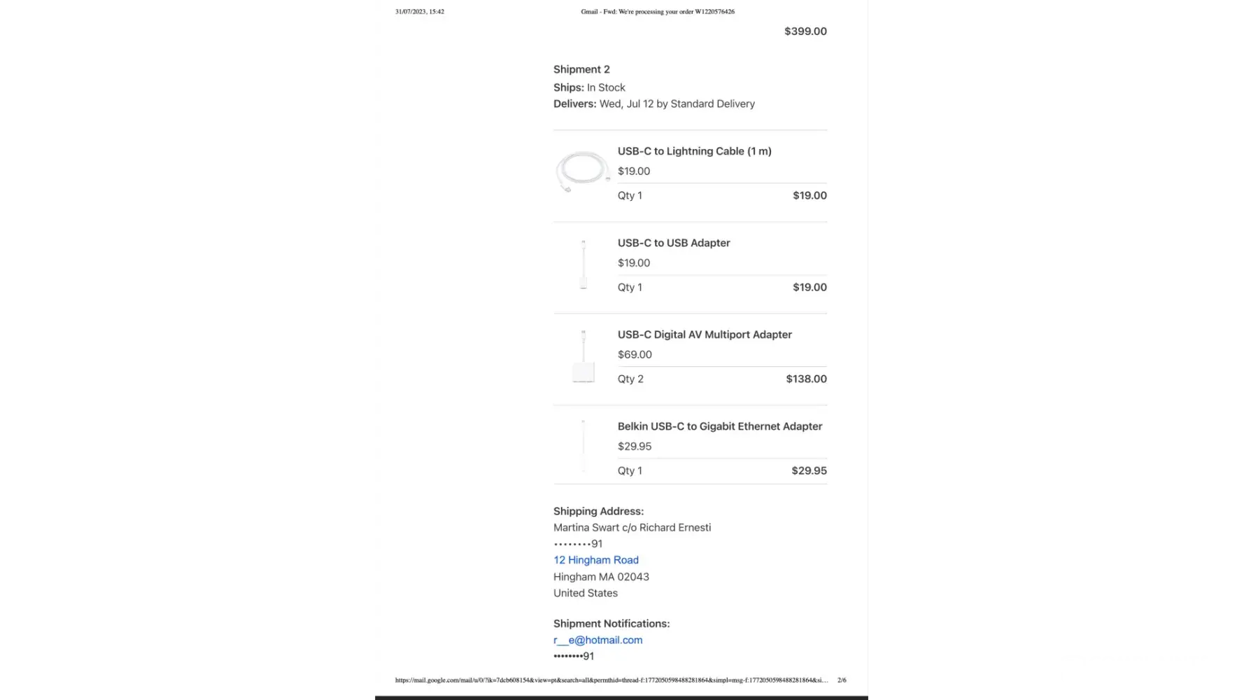 - The order was instructed to be shipped to the same address but what happened was: