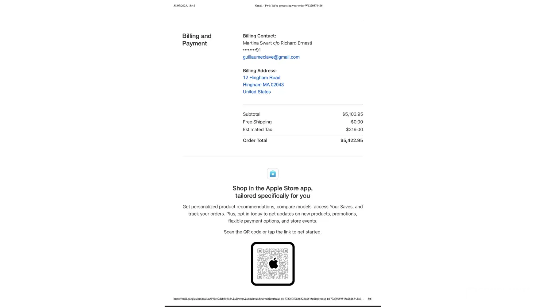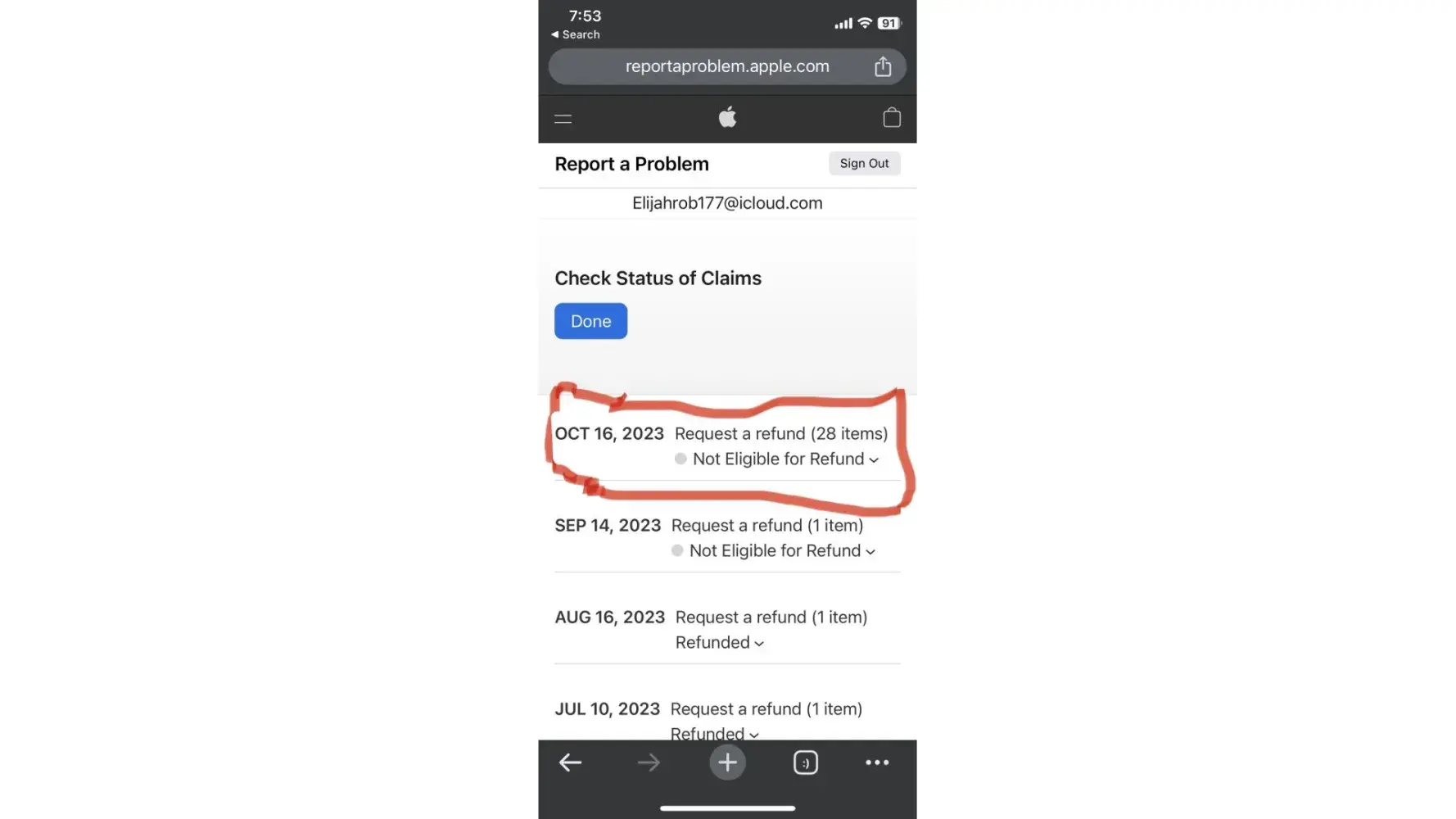 Read full complaintApple refusing to refund me $465.22