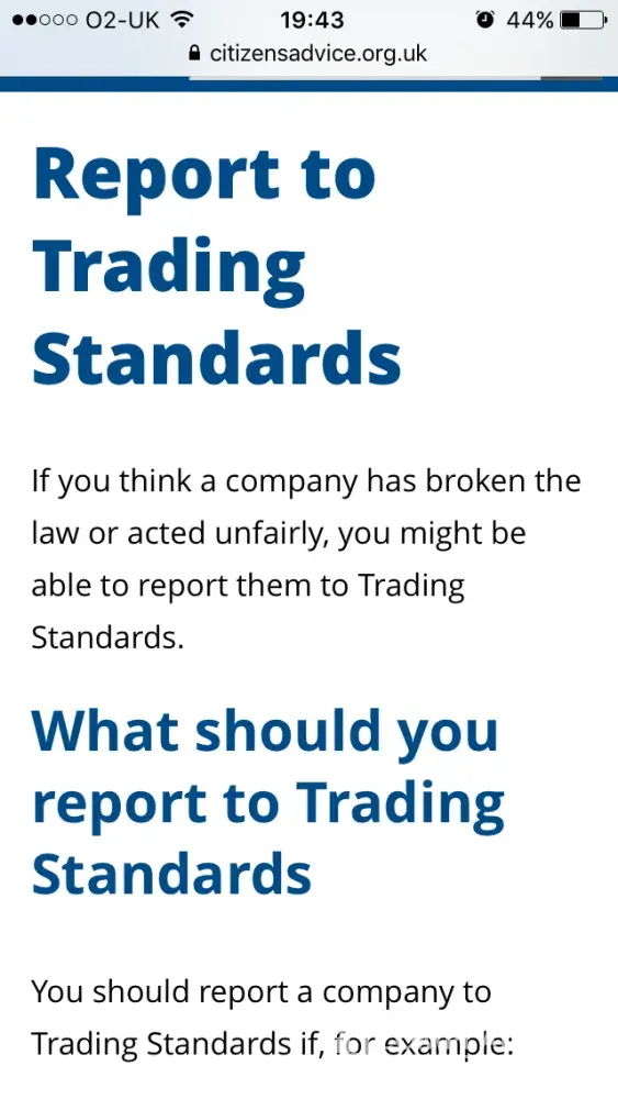 If they dont come back to us by then, we contact trading standard to report them again and they will advise us the formal mediation and finally small court procedures.