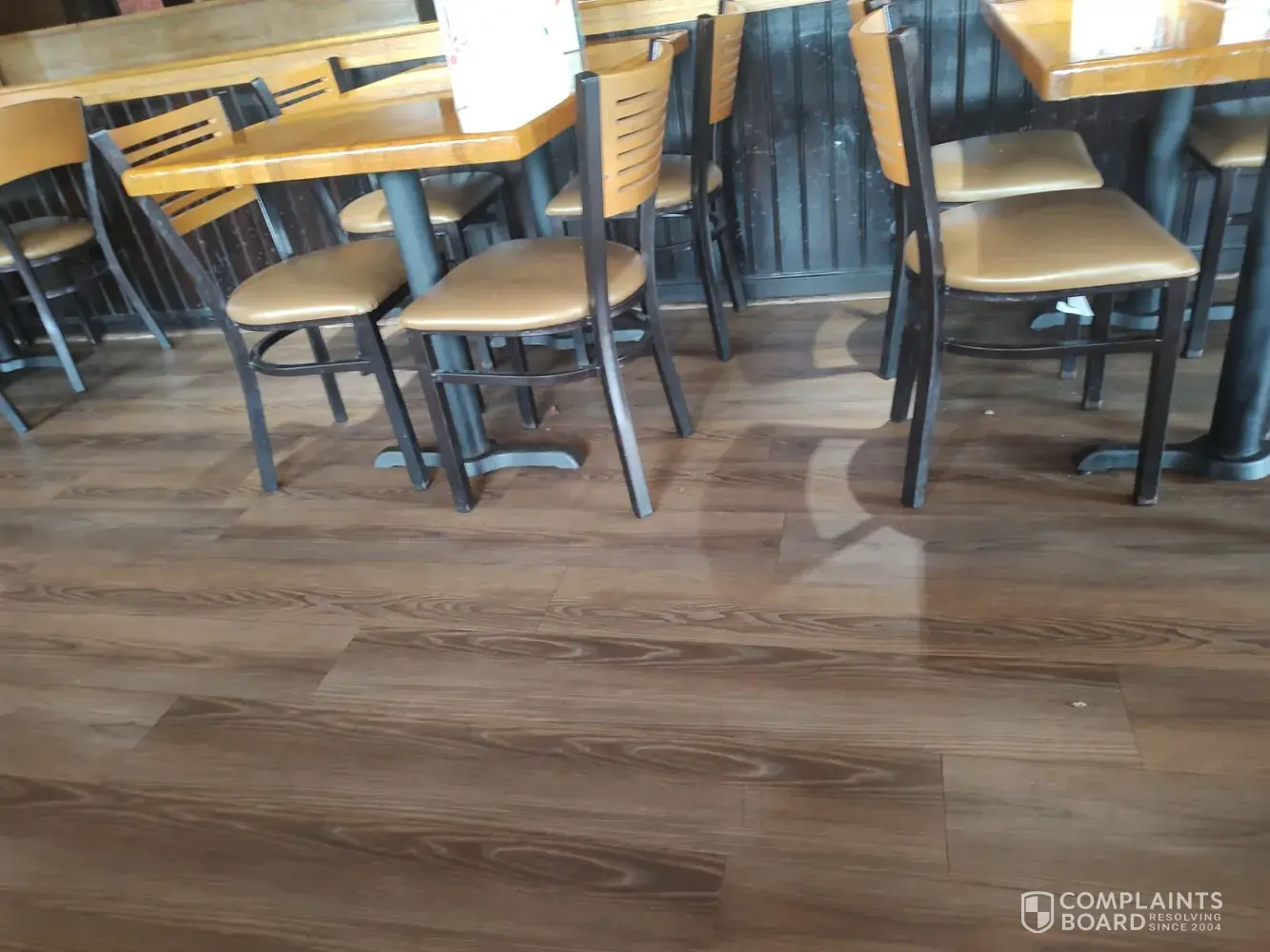 On 1/16/204 at approximately 11:330 am My wife went an Applebee's in Kissimmee Florida. When we were seated we started to look around the restaurant and we noticed we were the only customers inside. We also noticed that the floor was still dirty from the night before. I didn't notice that any of the employees were not cleaning up. there was food on the floor please see attached photos. Thank you Jimmie Batchelor