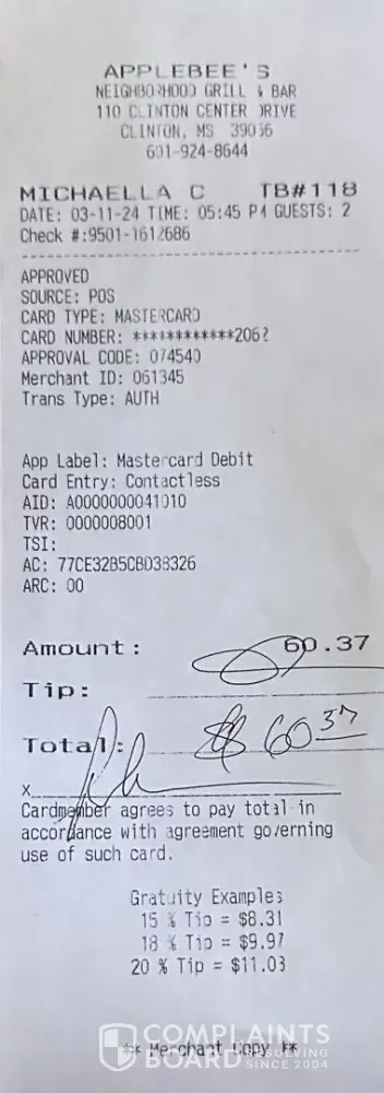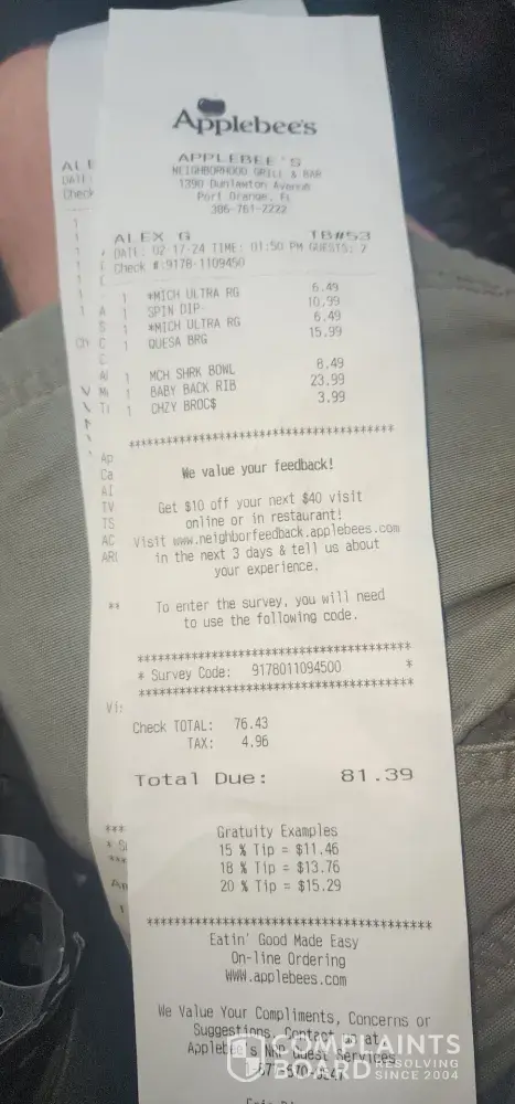 583 Applebee's Complaints