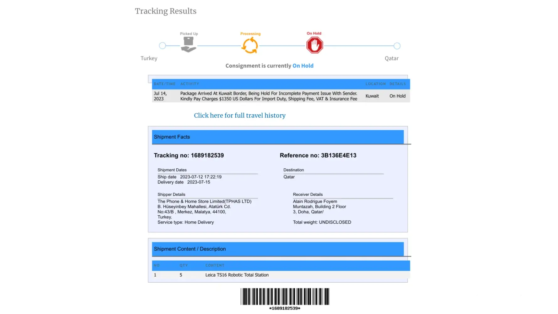 Read full complaintTPHAS LTD. (The Phone & Home Store Limited) - Total station leica ts16