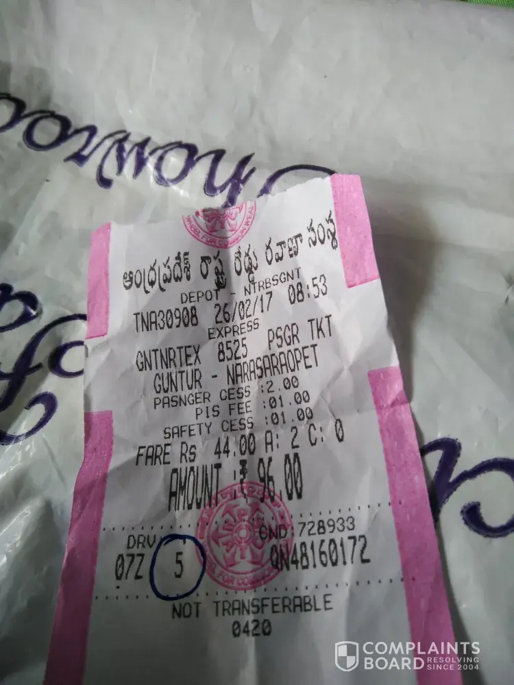 My worst journey experience with APSRTC, as every thing I explained in my above complaint.