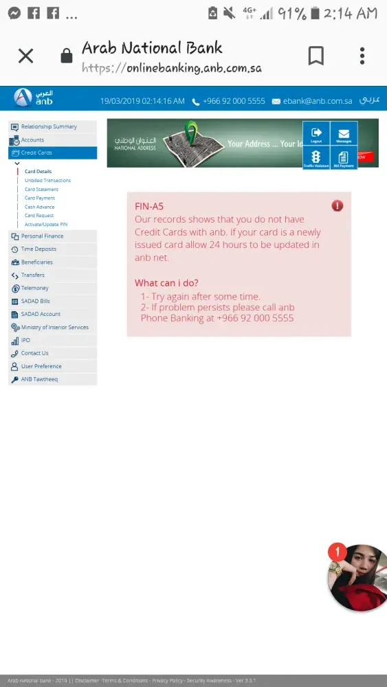 Because of the fear of being penalized again of 100SR (happened few months ago due to delay of ONLY 6 days). So I went to a branch of ANB to pay my monthly due to avoid penalty and got a confirmation sms after the payment.