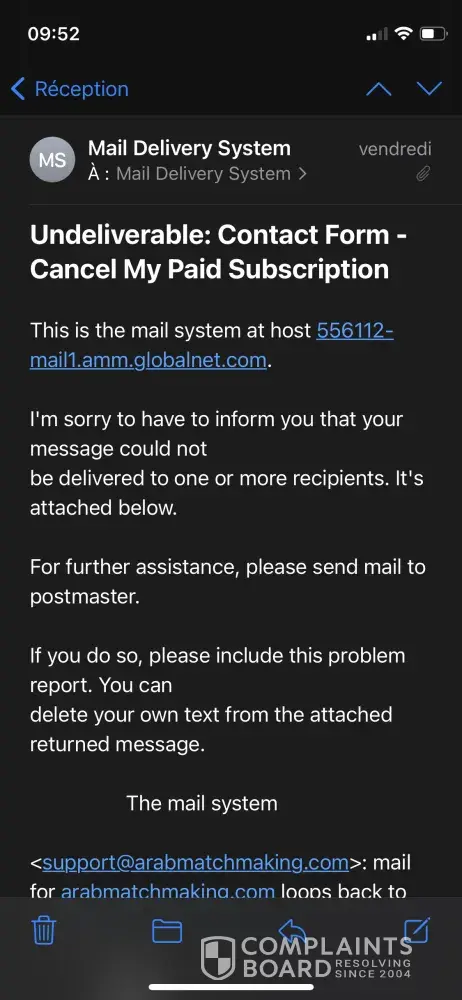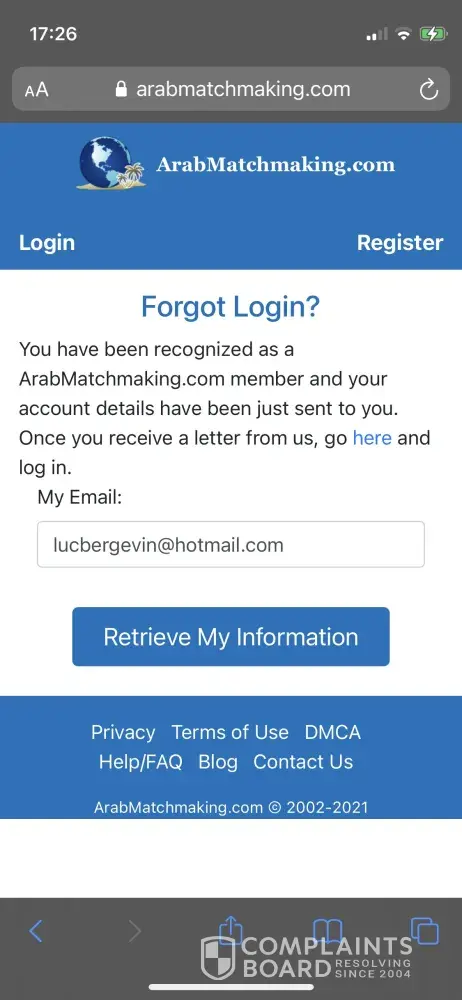 - While ArabMatchmaking.com has a high level of trust, our investigation has revealed that the company's complaint resolution process is inadequate and ineffective. As a result, only 8% of 12 complaints are resolved. The support team may have poor customer service skills, lack of training, or not be well-equipped to handle customer complaints.