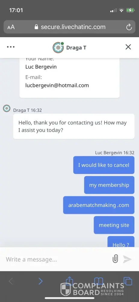 I have been sending e mails and all of them came back, I even spoke with ccbill about the credit card and they could not find my information, I send numerous e mails at support@arabematchmaking, com and without results
