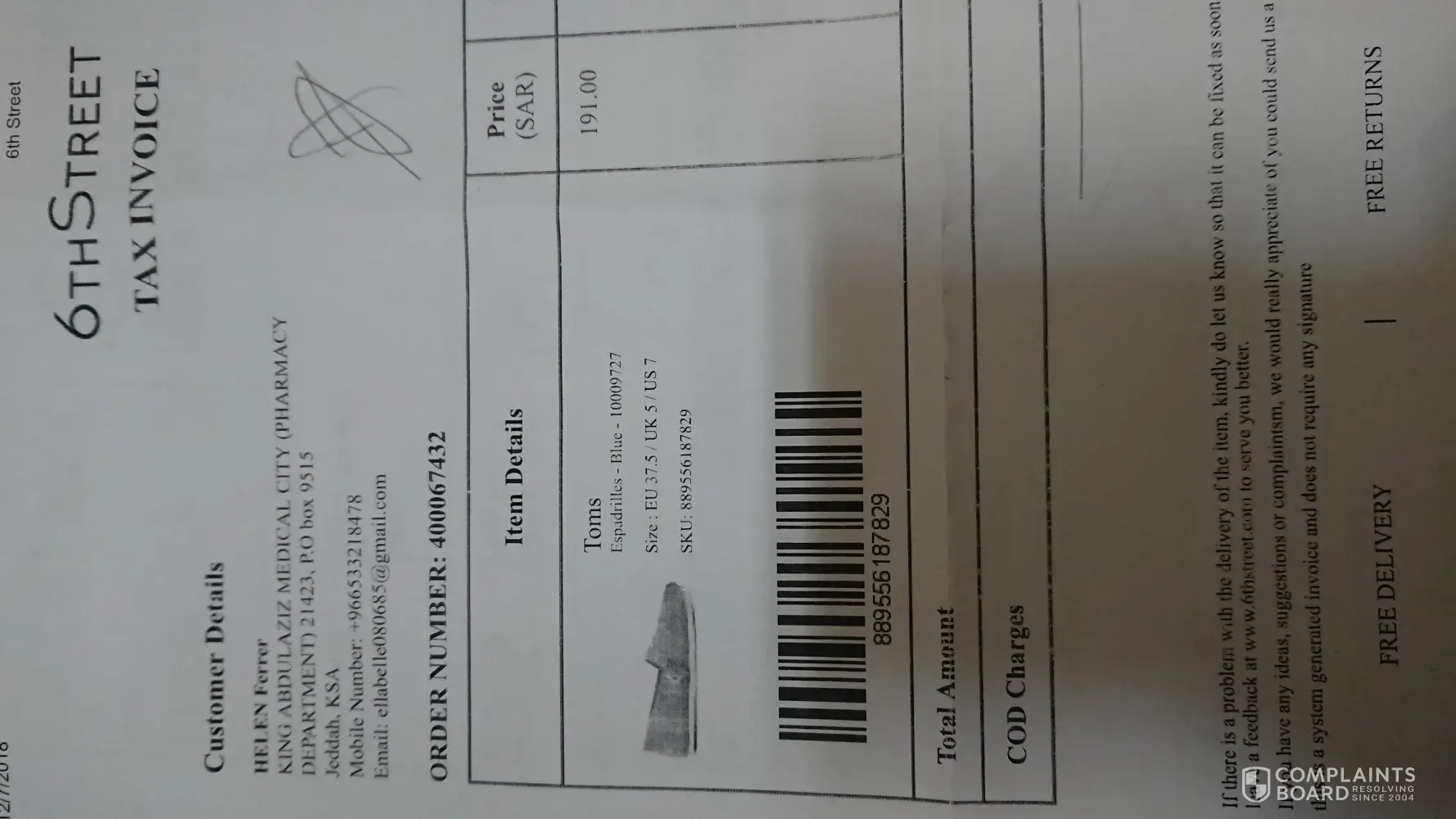 I received on friday dec 7 by aramex the expected order of toms size 7, I received size 7 nike rubber shoes. I tried to call 6th street dubai and they took my number saying that they will ask the manager to give me a call, but throughout the day no one called. I looked up contacts from their website and found apparel group. However, they have only one contact number posted and it can not be reached. The return policy says 14days of return. No suffiecient and reliable information is available.